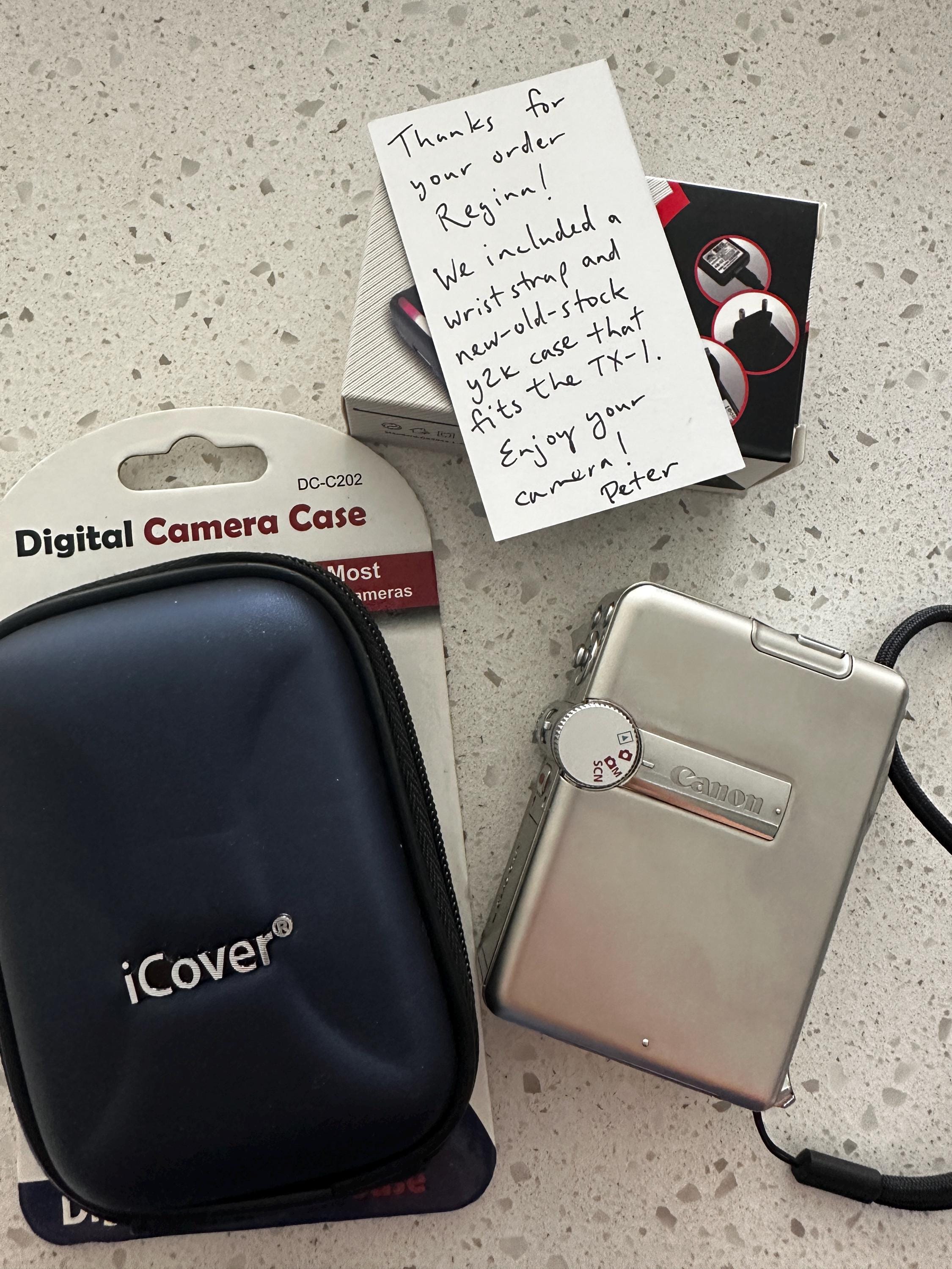 Canon Powershot TX1 digicam w/ 4GB SD card + battery + c...Can't recommend this store front enough! They answered all my questions and gave great honest feedback. Shipping was quick and a... Read MoreCan't recommend this store front enough! They answered all my questions and gave great honest feedback. Shipping was quick and arrived earlier than expected. Such a sweet note with an extra pouch for the digicam, definitely loving all the y2k vibes. Thank you again! HidePosted onRRegina LVerified Etsy Customer -