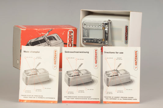 Perocut Filmschneider 35mm film cutter w/original box and manual; made in Switzerland