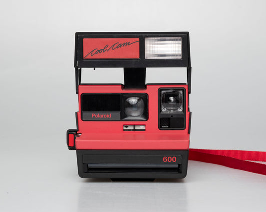 Red Polaroid 600 Cool Cam instant camera (serial F2B0850HVAC)