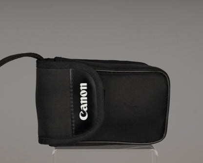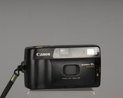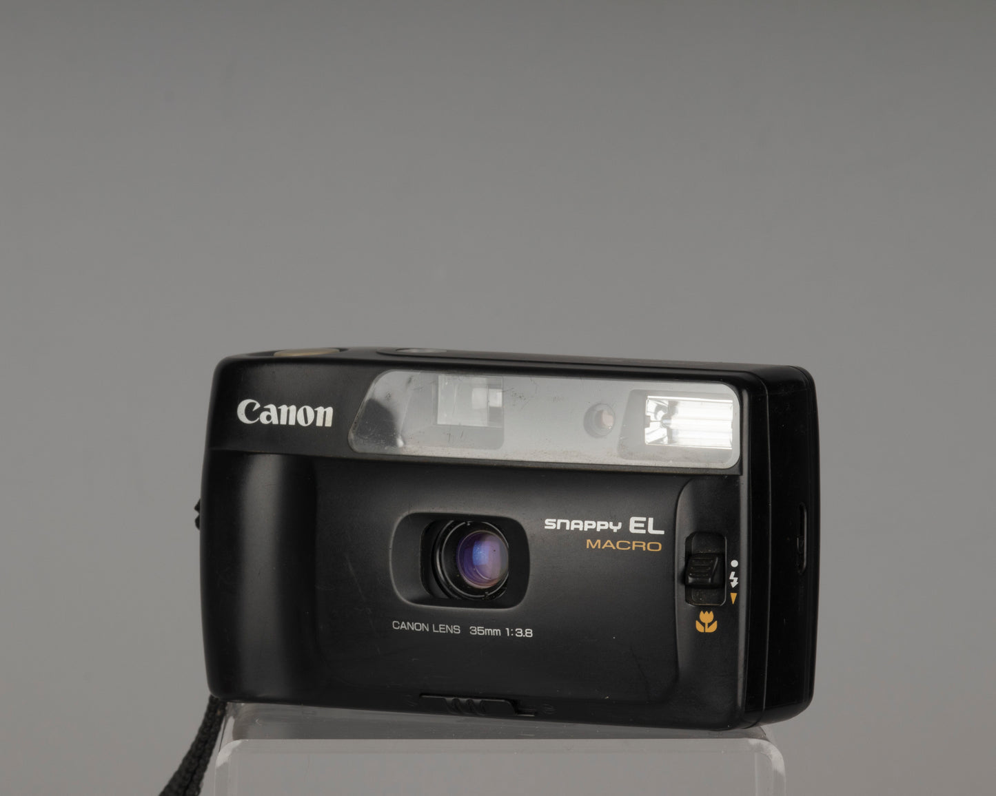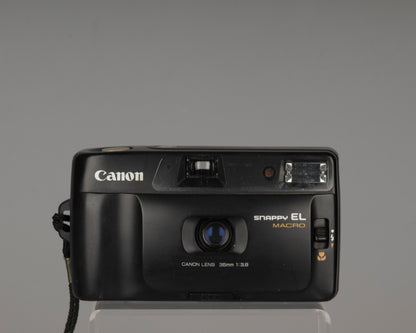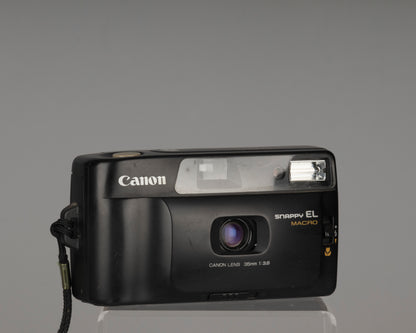 The Canon Snappy EL (called the Prima Junior in other countries) is a basic but good quality 35mm point and shoot with fixed focus plus a dedicated macro mode (focuses at 50cm). Here's the description from the Canon Museum: