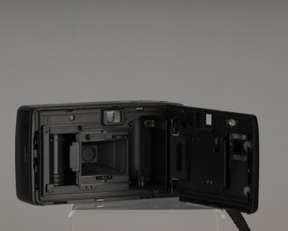 Fully automatic compact camera with a behind-the-lens mechanical shutter, single shutter speed of 1/125 sec., and a single focal length. For exposure control, a program sets one of three aperture settings to suit the shutter speed and lighting conditions. At ISO 100/200 in ambient light, f/8 is set. When flash is used, f/3.8 is set. And for the macro shots, f/16 is set.