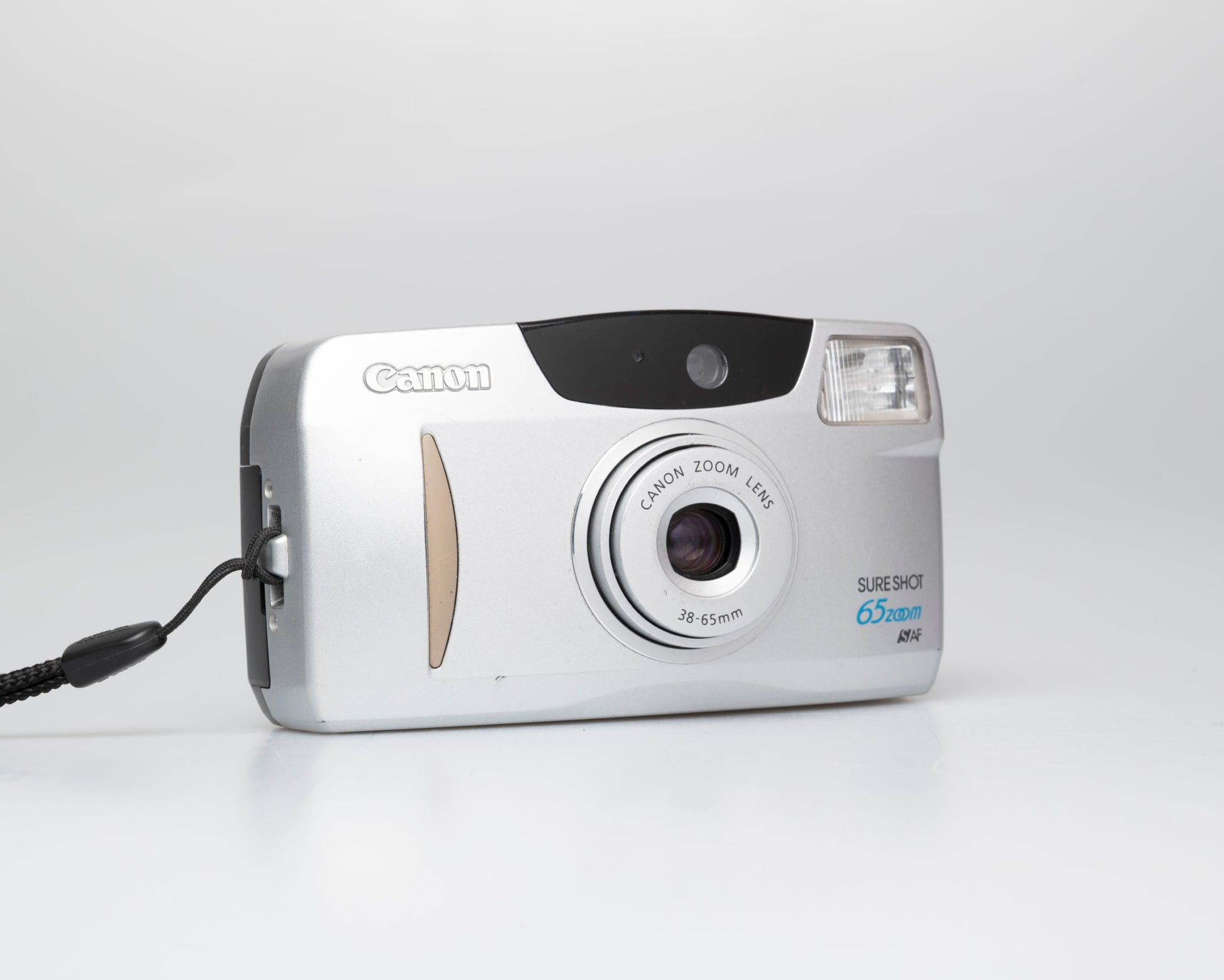 This is a later model in the great Canon Sure Shot series of point-and-shoot 35mm cameras. The Sure Shot Zoom 65 (called the Prima Zoom 65 in some countries) is a lightweight camera with a very easy-to-use mode selector dial in the back. We particularly like how it gives quick access to a 'no flash' mode. It features a flexible 38-65mm zoom lens.
