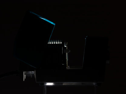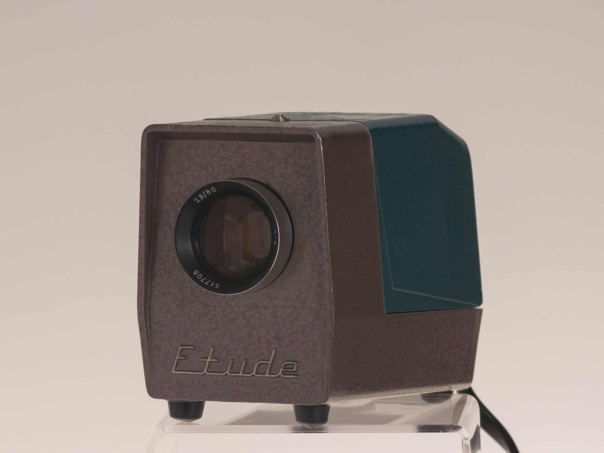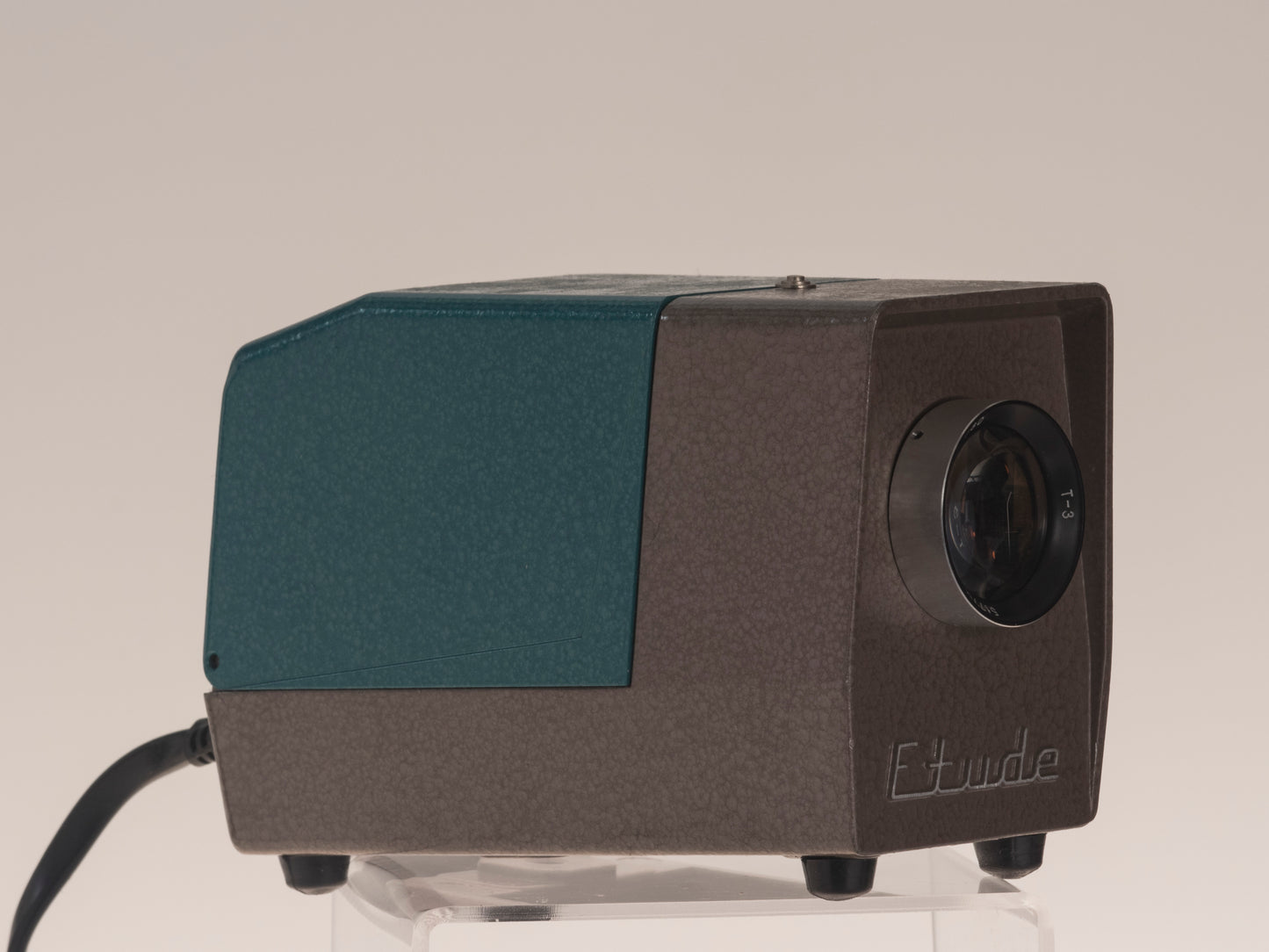 The diminutive FED Etude is a beautiful vintage 35mm slide projector that was made in the USSR. The projector features a sharp 80mm f2.8 T-3 lens (many people convert these lenses for digital camera use). This is the export version designed to work with North American electricity. The projector is an excellent choice when space is a premium; it's much smaller than a conventional Kodak Carousel style projector (of course you have to manually change the slide with the Etude since it doesn't use a tray/magazine).