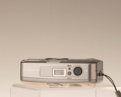 The Fujifilm Clearshot S Autofocus is an ultra-compact and lightweight 35mm film camera. Its wide 26mm lens makes it a good choice for beach and street photography. The camera requires two AAA batteries (not included).
