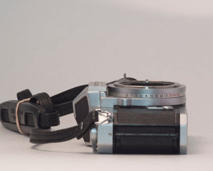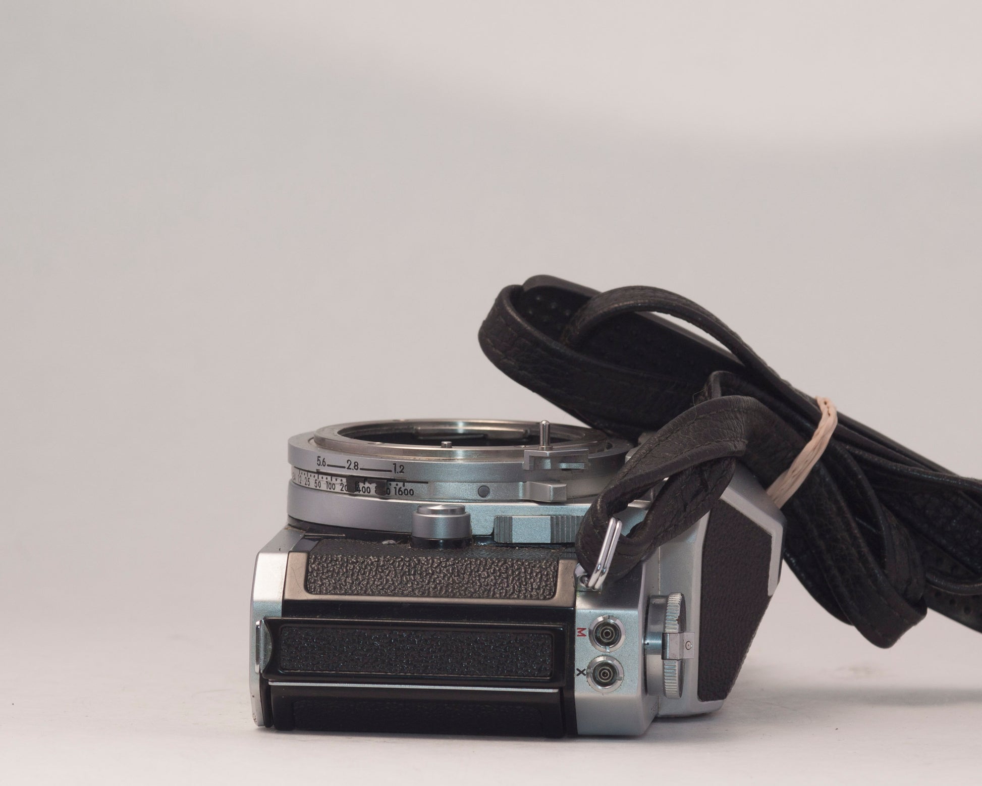 • Exposure: Fully coupled centre-the-needle visible in viewfinder and top-plate window. EV range: 3 to 17 at 100 ASA.