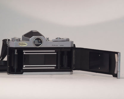 The camera and lens are in very good aesthetic condition (see photos) and in excellent working condition. There is some minor dust in the viewfinder (does not affect photos). All shutter speeds were tested and verified to be accurate* and free of capping or any other issues. The camera and lens were tested with film and delivered excellent results.
