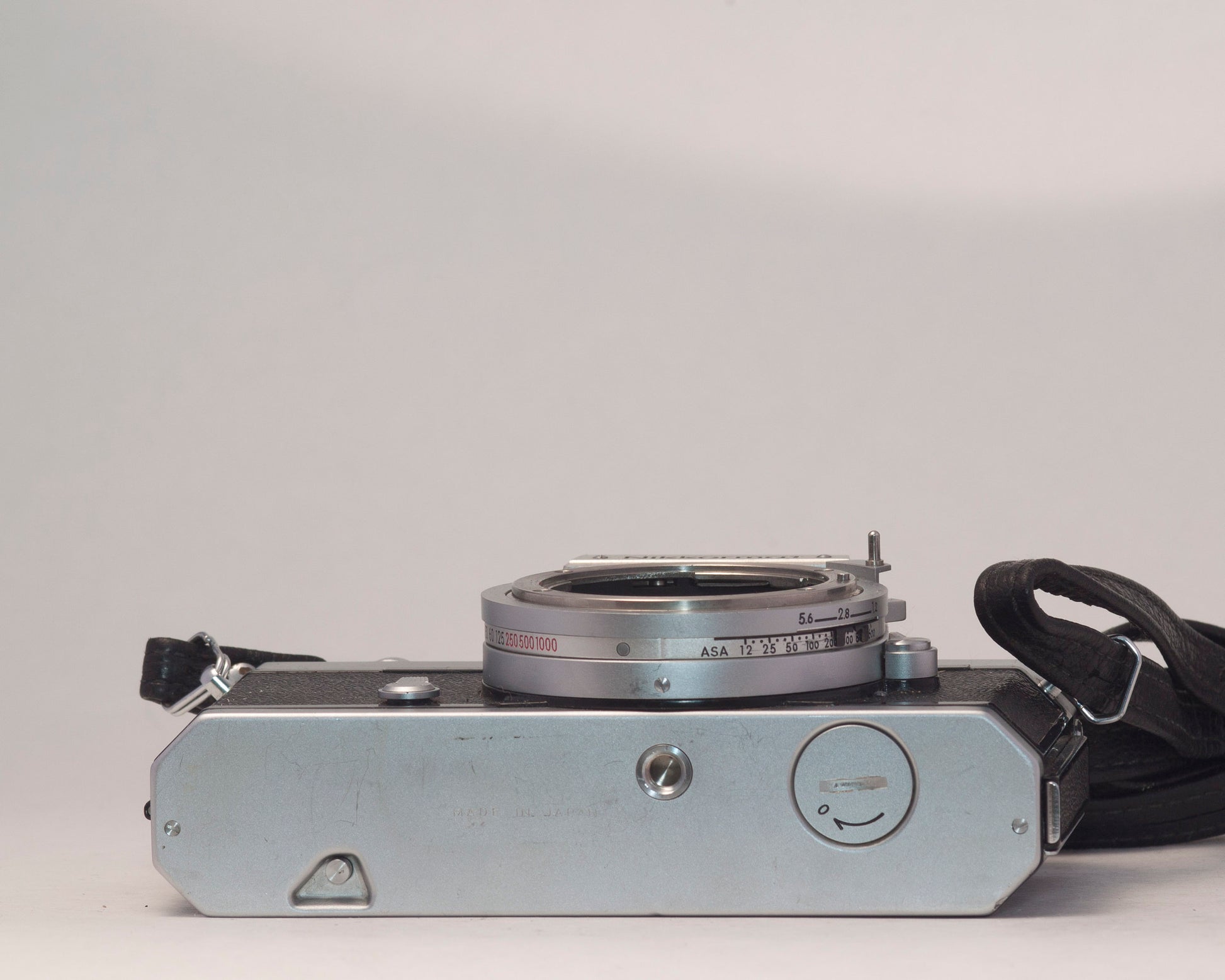 The FTn is a very elegant design with a number of features to appeal to advanced users like: a depth of field preview button beside the shutter release; a mirror lockup switch; light meter readable both through the viewfinder and in a window on top of the camera.