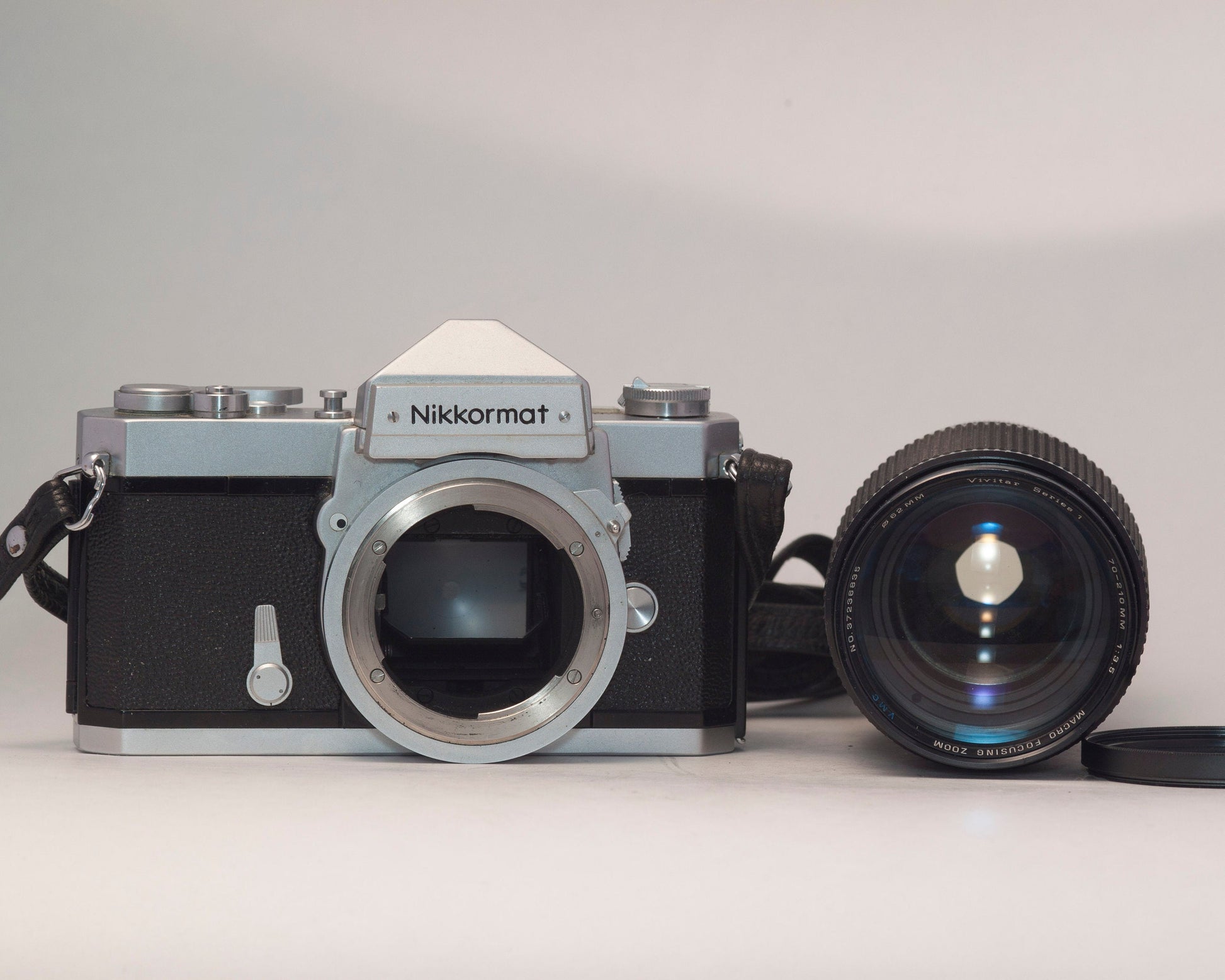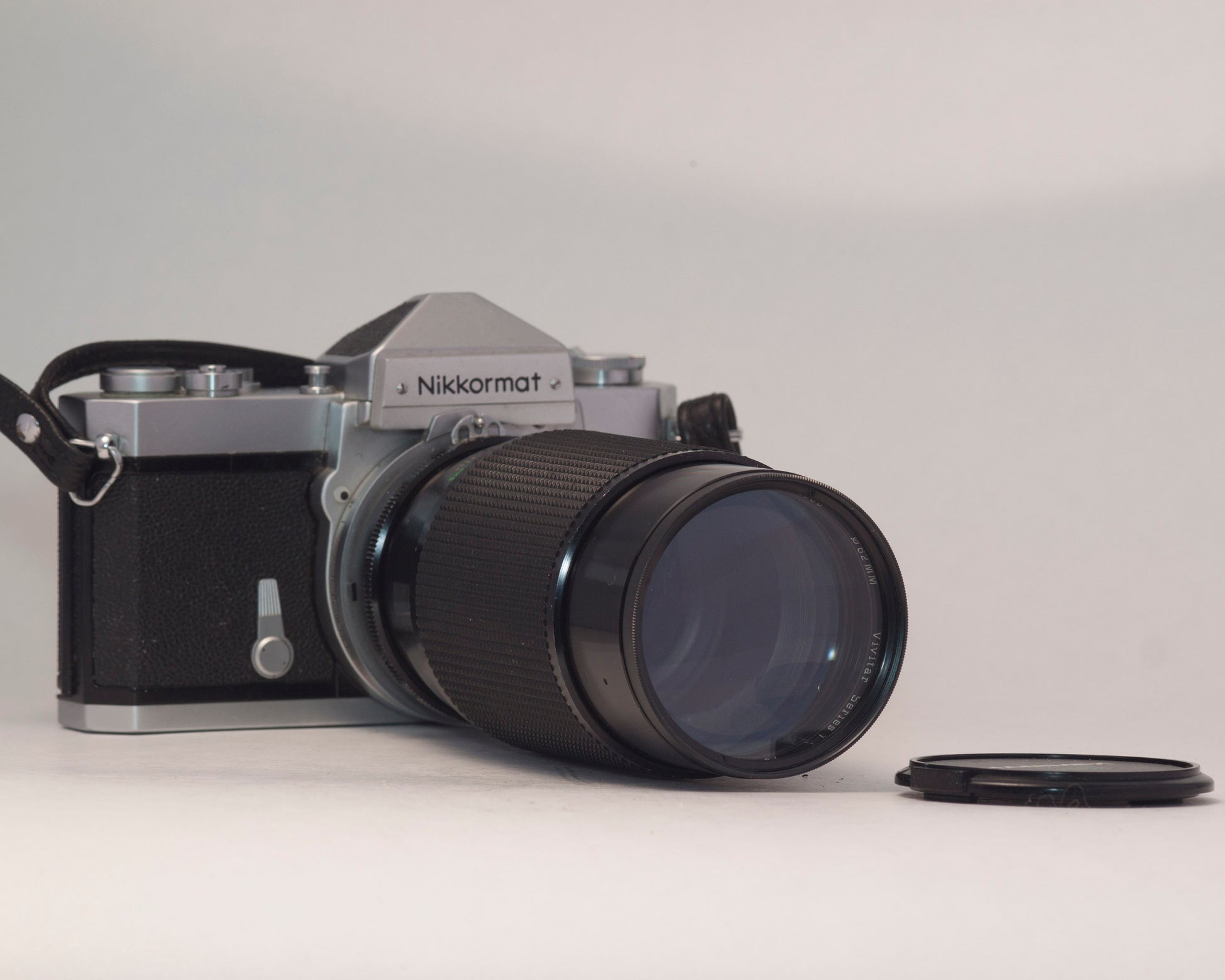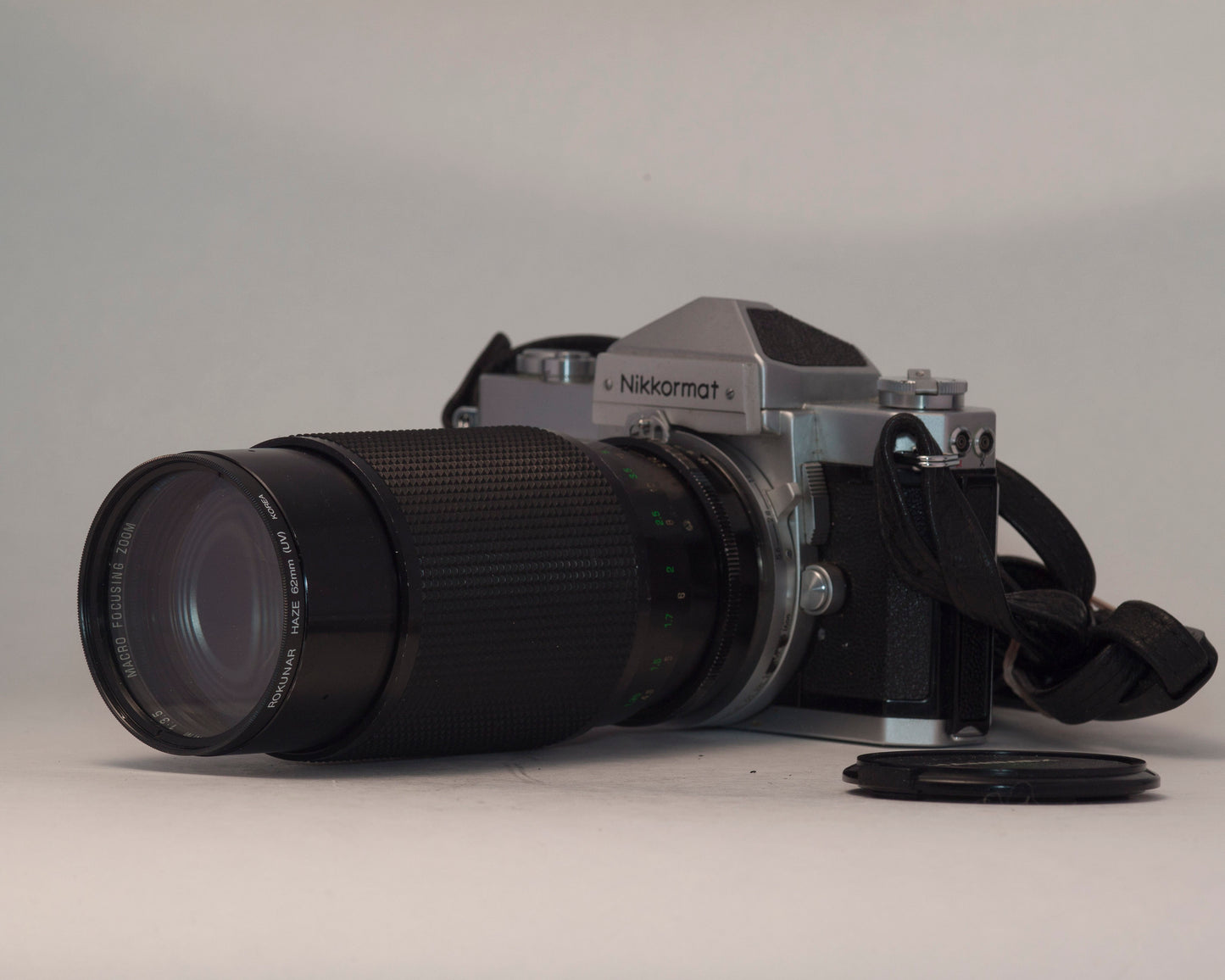 The Nikkormat FTn is a classic manual focus, mechanical 35mm film SLR from the 1970s and the included lens is a superb Vivitar Series 1 70-210mm f3.5 (rev. 2 manufactured by Tokina) with macro focusing. This is a very versatile and reliable camera and lens combination.