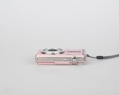 The Olympus FE-330 is an 8 megapixel CCD sensor digicam from 2008. This one features pink anondized metal body. The camera was also called the X-845 and C-550.