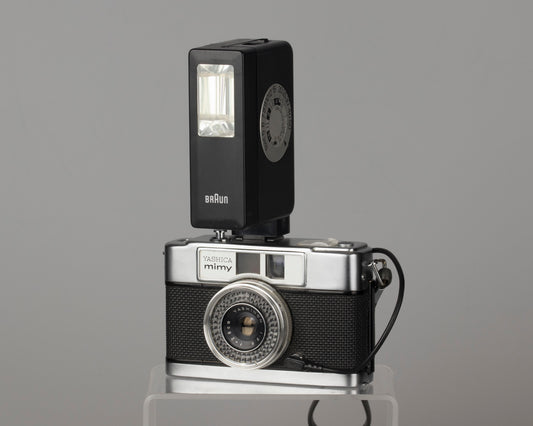 Appareil photo demi-format Yashica Mimy 35 mm et flash Braun