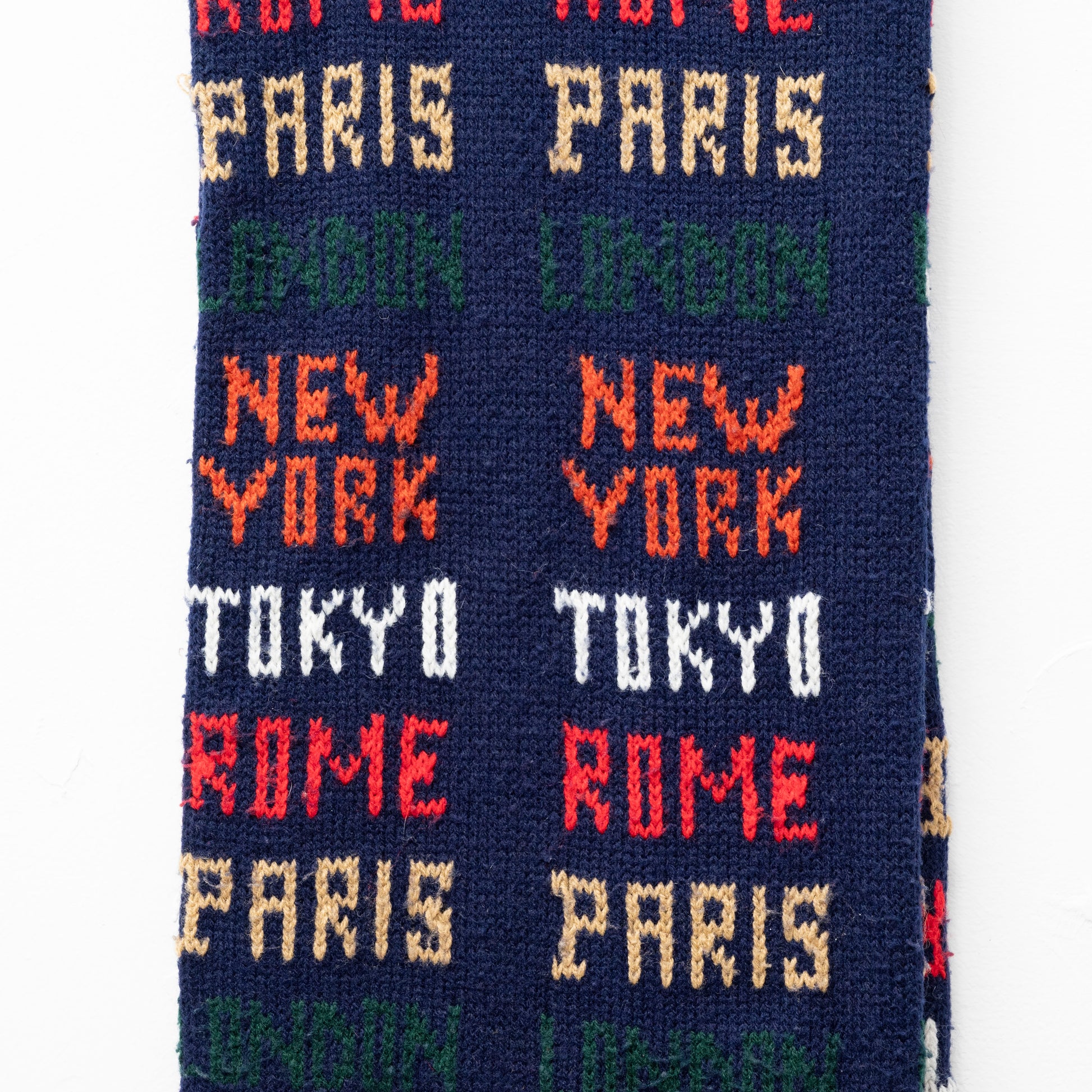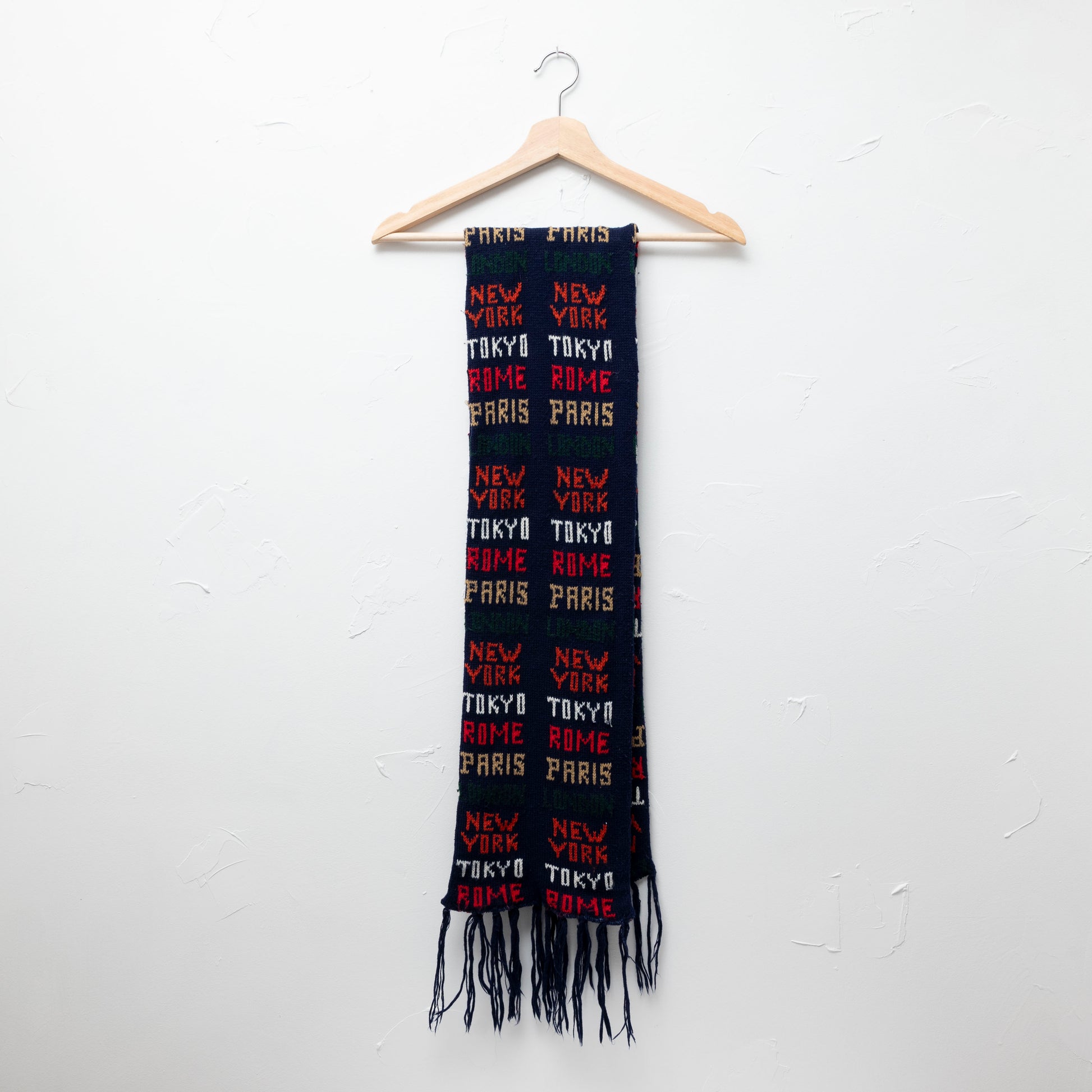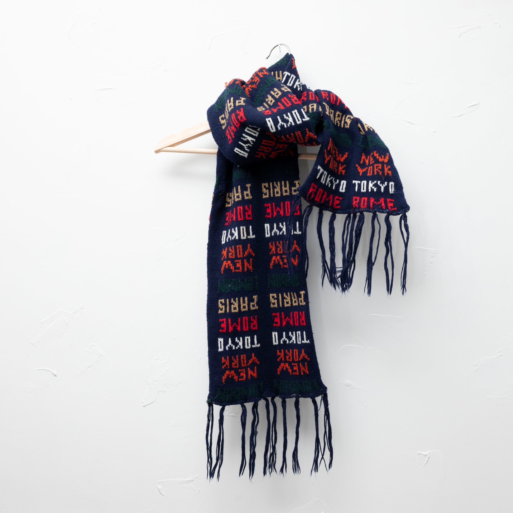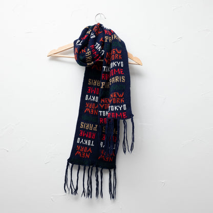 Grand foulard, grandes villes. Marine avec une police multicolore. Épais et chaud pour vous garder à l'aise lors de vos aventures urbaines.