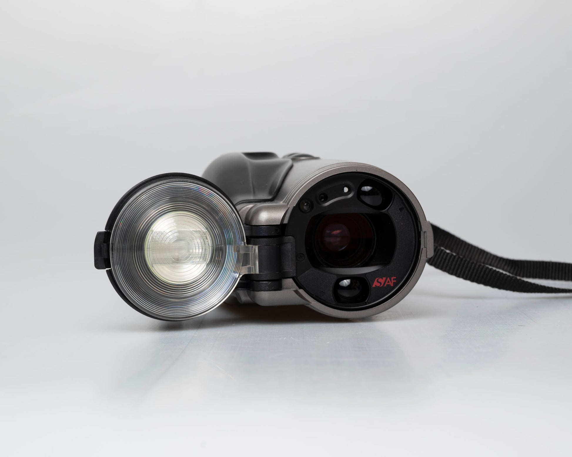- Flash intégré : Flash intégré dans le capuchon. Numéro de guide 12 – 25 (à ISO 100 en mètres). Se déclenche automatiquement dans des conditions de faible luminosité et de contre-jour. Lampe de réduction des yeux rouges fournie.