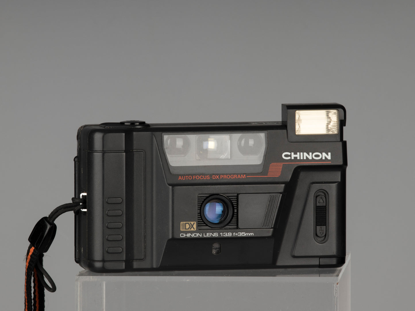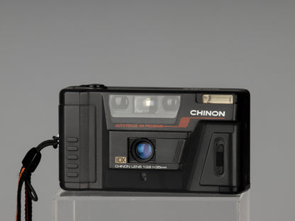 Le Chinon Auto GLX est un 35 mm autofocus de fabrication japonaise de base mais de bonne qualité datant d'environ 1986. Il est doté d'un objectif fixe de 35 mm f3.9 ; mise au point automatique avec verrouillage de la mise au point (pratique pour les compositions décentrées) ; et un flash qui ne se déclenche que lorsque vous l'allumez (toujours une de nos fonctionnalités préférées).