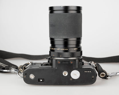 L'objectif inclus est un zoom polyvalent Vivitar 38-85 mm 1:3,5-4,6 MC.