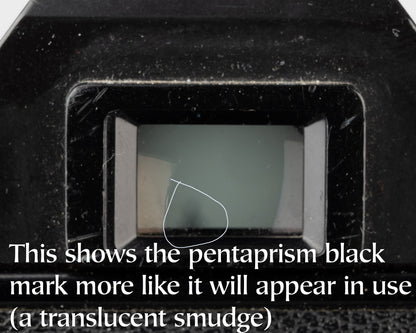 Remarque : Cet appareil photo a une petite marque noire sur son pentaprisme visible dans le viseur sous la forme d'une tache sombre (voir les deux dernières photos). Cela n'affecte pas les photos ou la mise au point, mais nous avons réduit l'appareil photo car cela pourrait distraire certaines personnes.