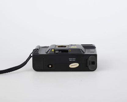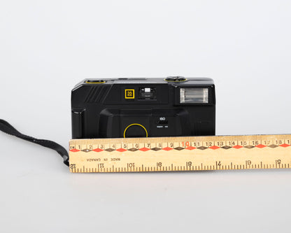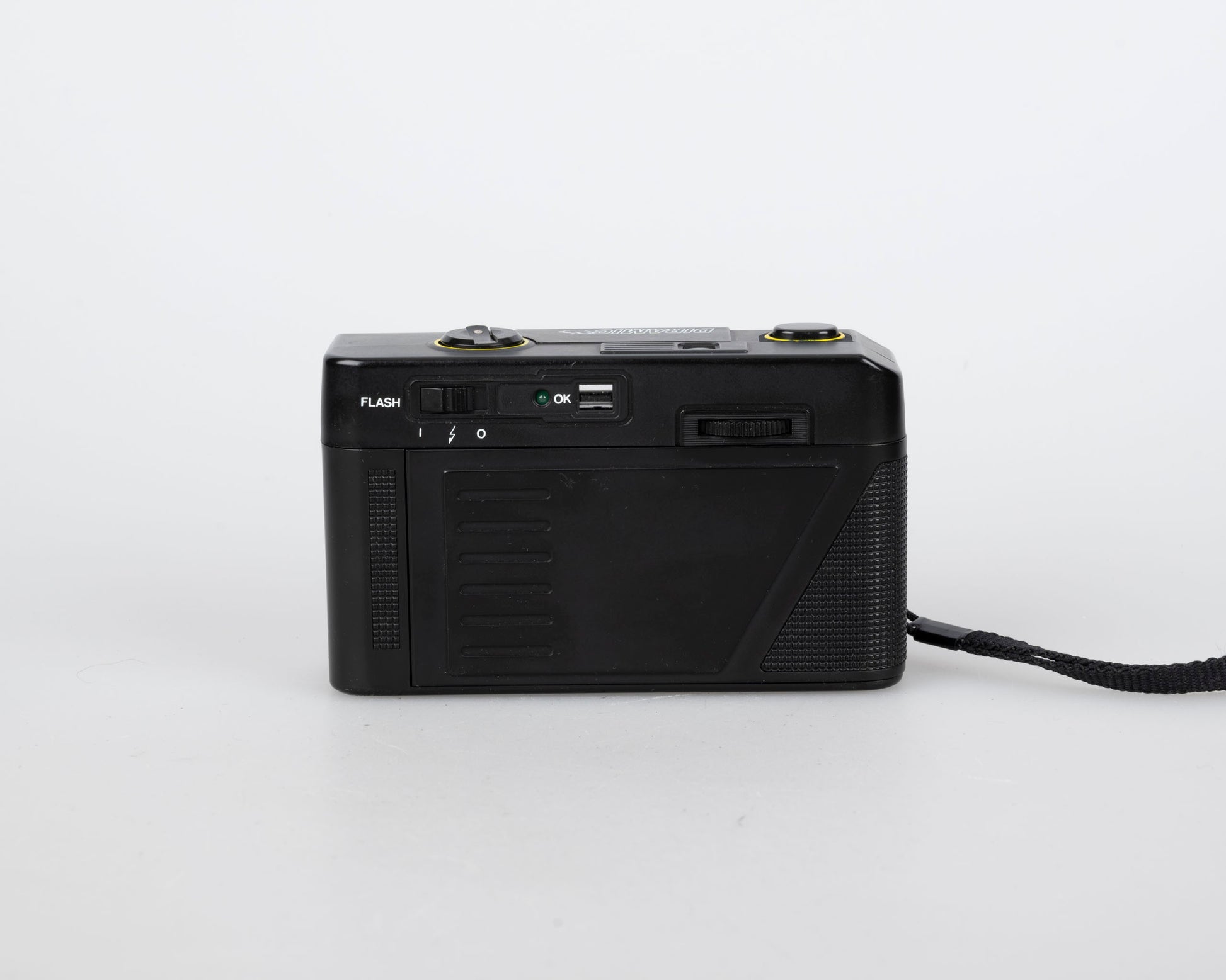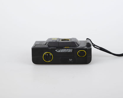 Le Diramic XL 1000 est un appareil photo 35 mm simple, sans mise au point et à entraînement mécanique, datant des années 1980. Il dispose d'un objectif fixe 38 mm f5.6 et prend en charge la mesure des films ISO 100/200 et 400. Le flash de l'appareil photo ne se déclenche que s'il est allumé (une fonctionnalité intéressante à notre avis).