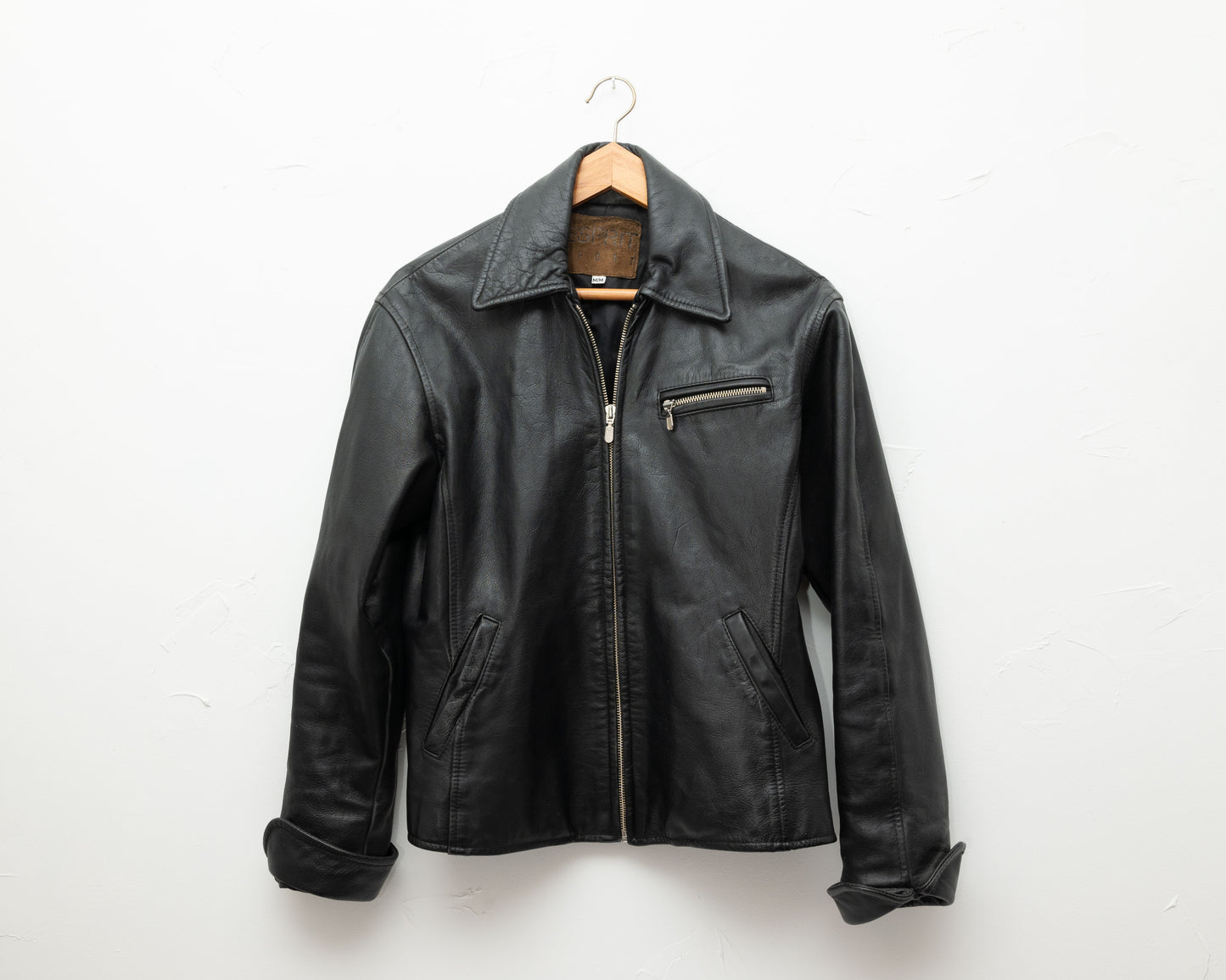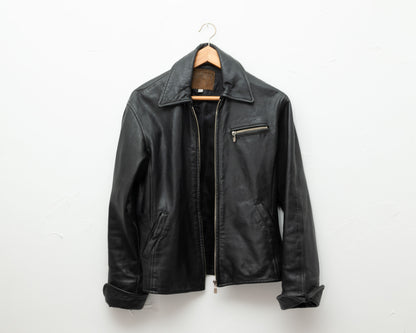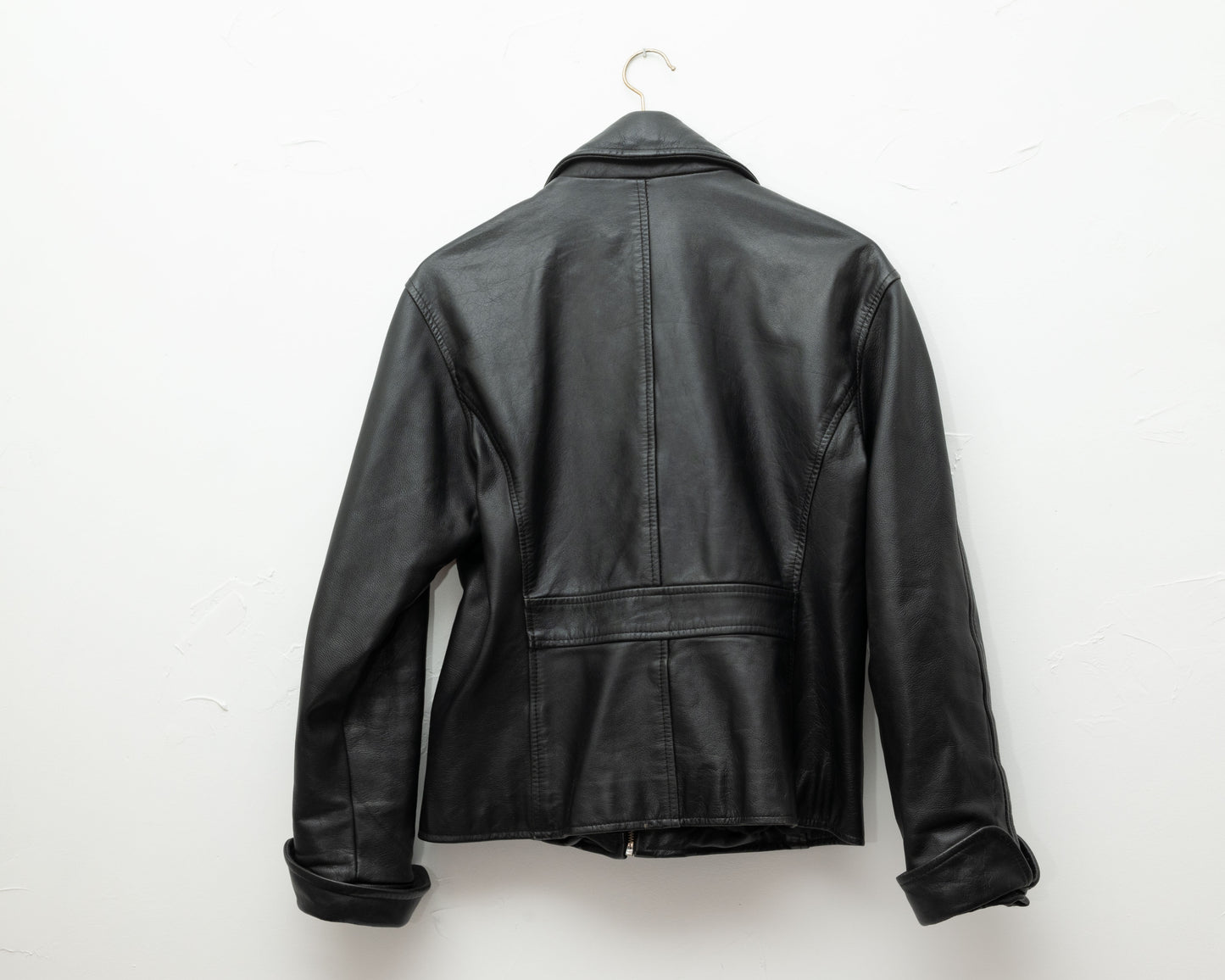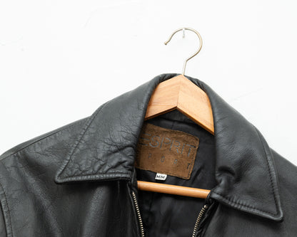 Veste Esprit Sport en cuir noir. Fermeture éclair YKK argentée. Cuir épais et beurré. Médium féminin.