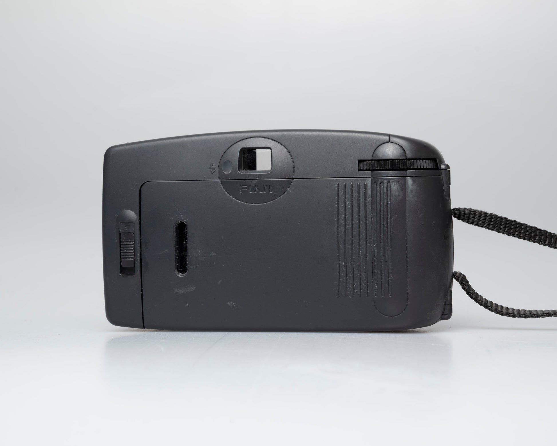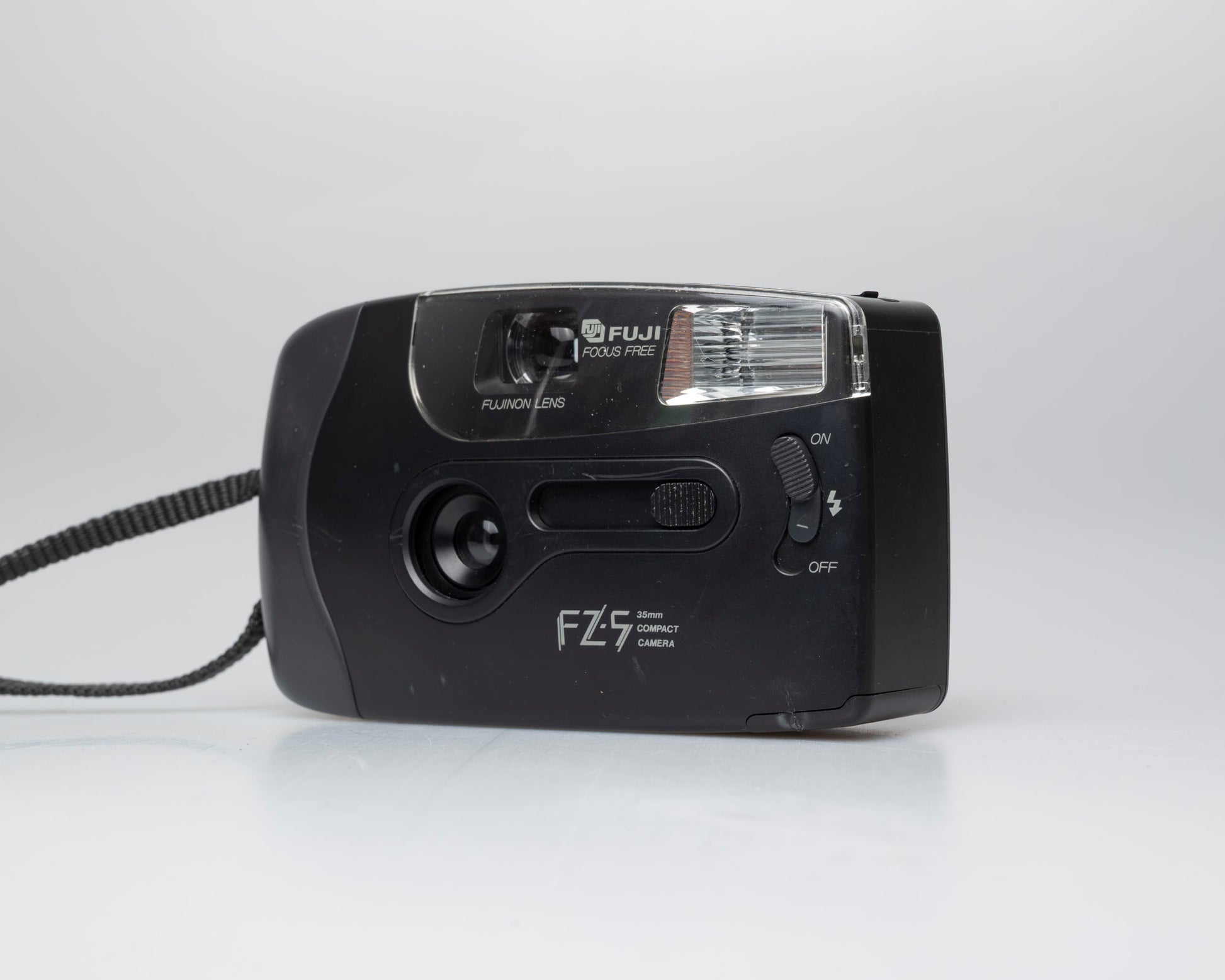 Cet appareil photo est un appareil photo compact à mise au point fixe de Fuji, le FZ-5 a été introduit en 1989 après avoir été exposé à Photokina l'année précédente. Il était disponible en rouge vif ou en noir (édition : c'est définitivement plus gris que noir). Au Japon, il était également connu sous le nom de Fuji Bene. Une version Hi ! Mickey Mouse a également été produite.