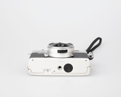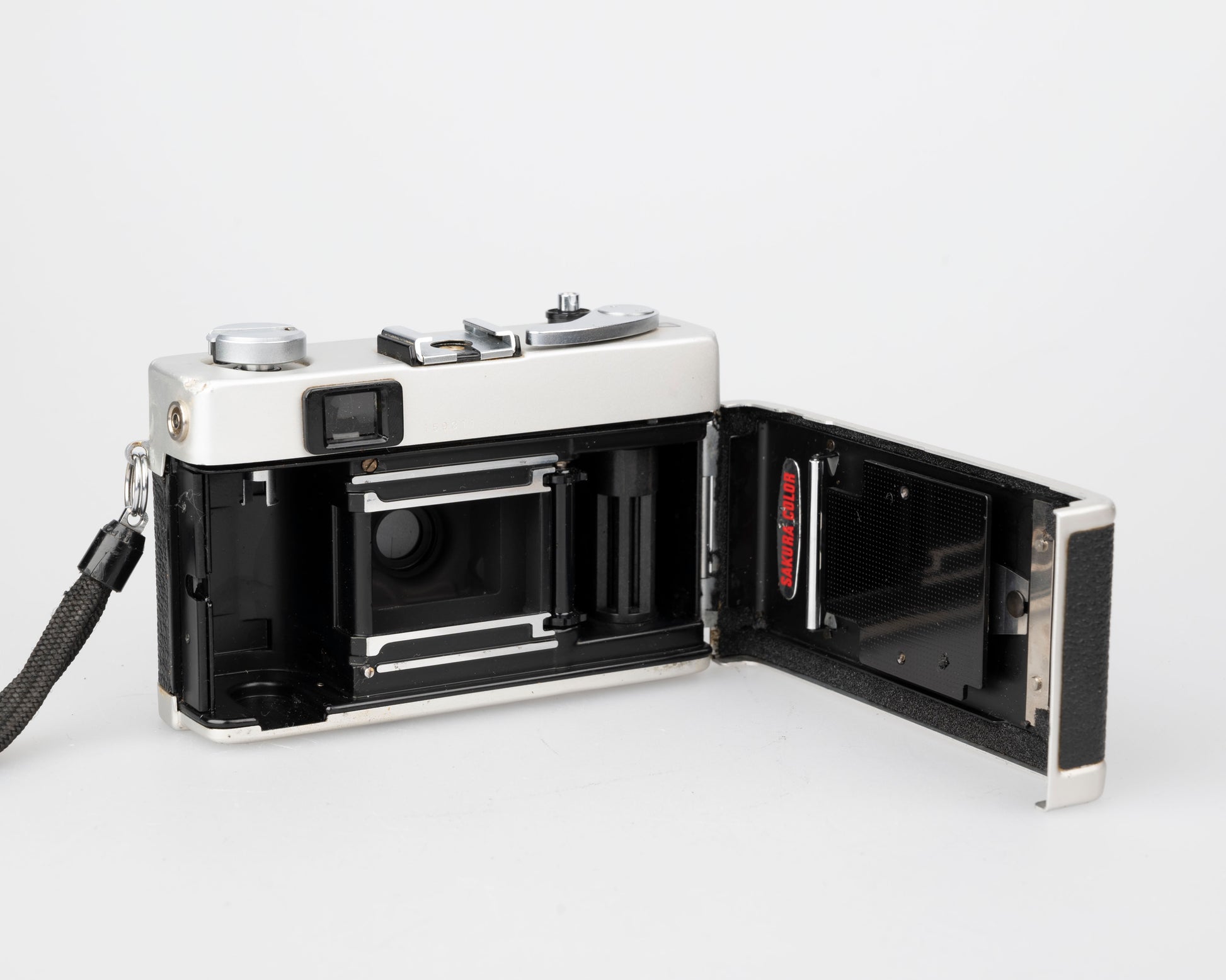 Cet appareil photo a été testé sur film et a donné des photos nettes et correctement exposées. L'appareil photo est en bon état cosmétique avec le défaut le plus notable étant une petite bosse sur l'un des coins (voir photos). Son télémètre est précis et facile à mettre au point.