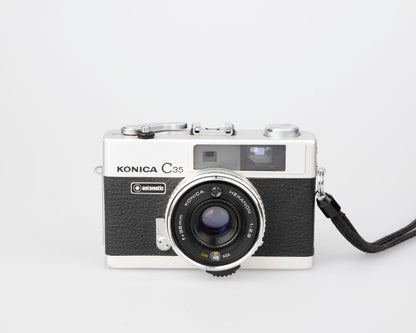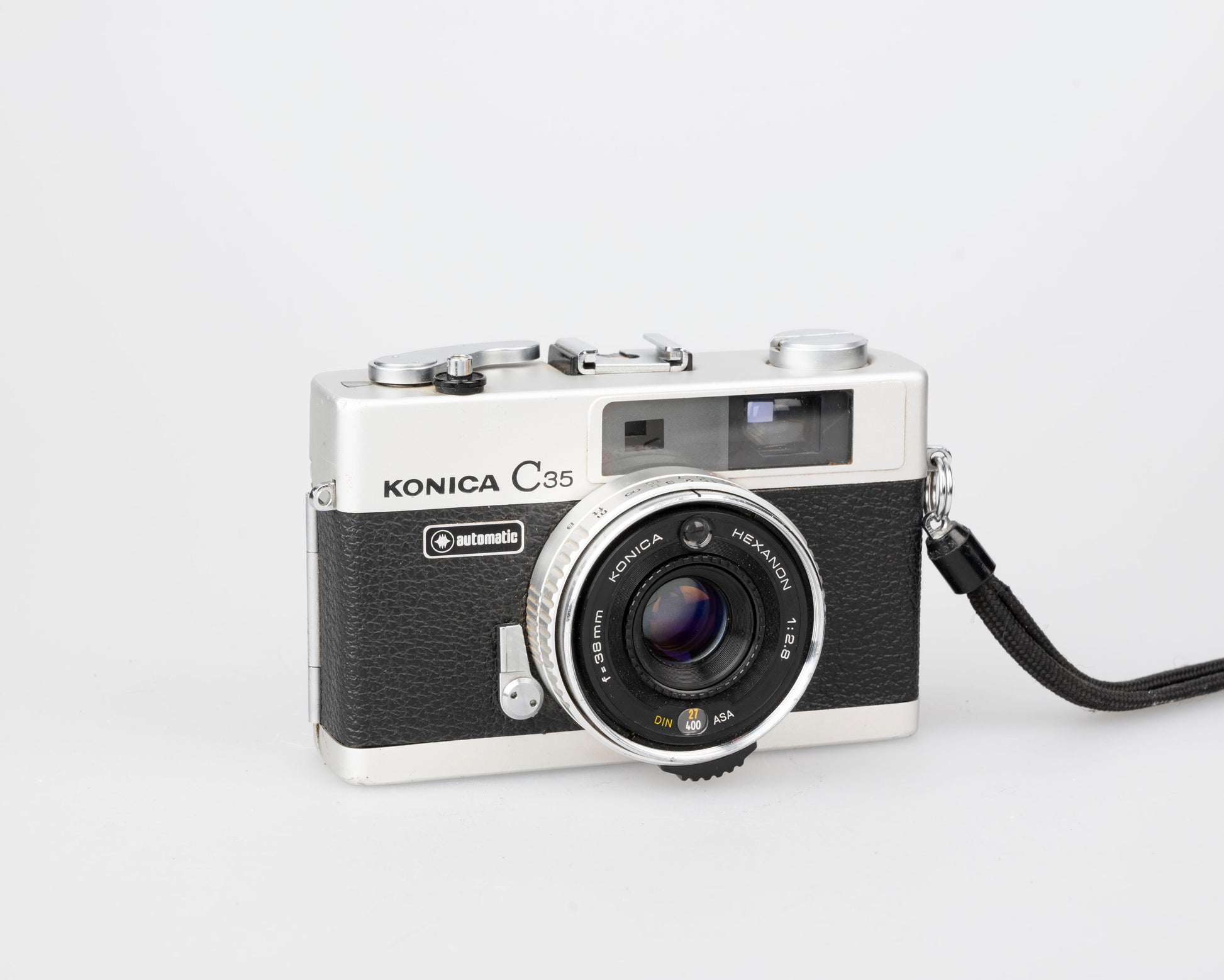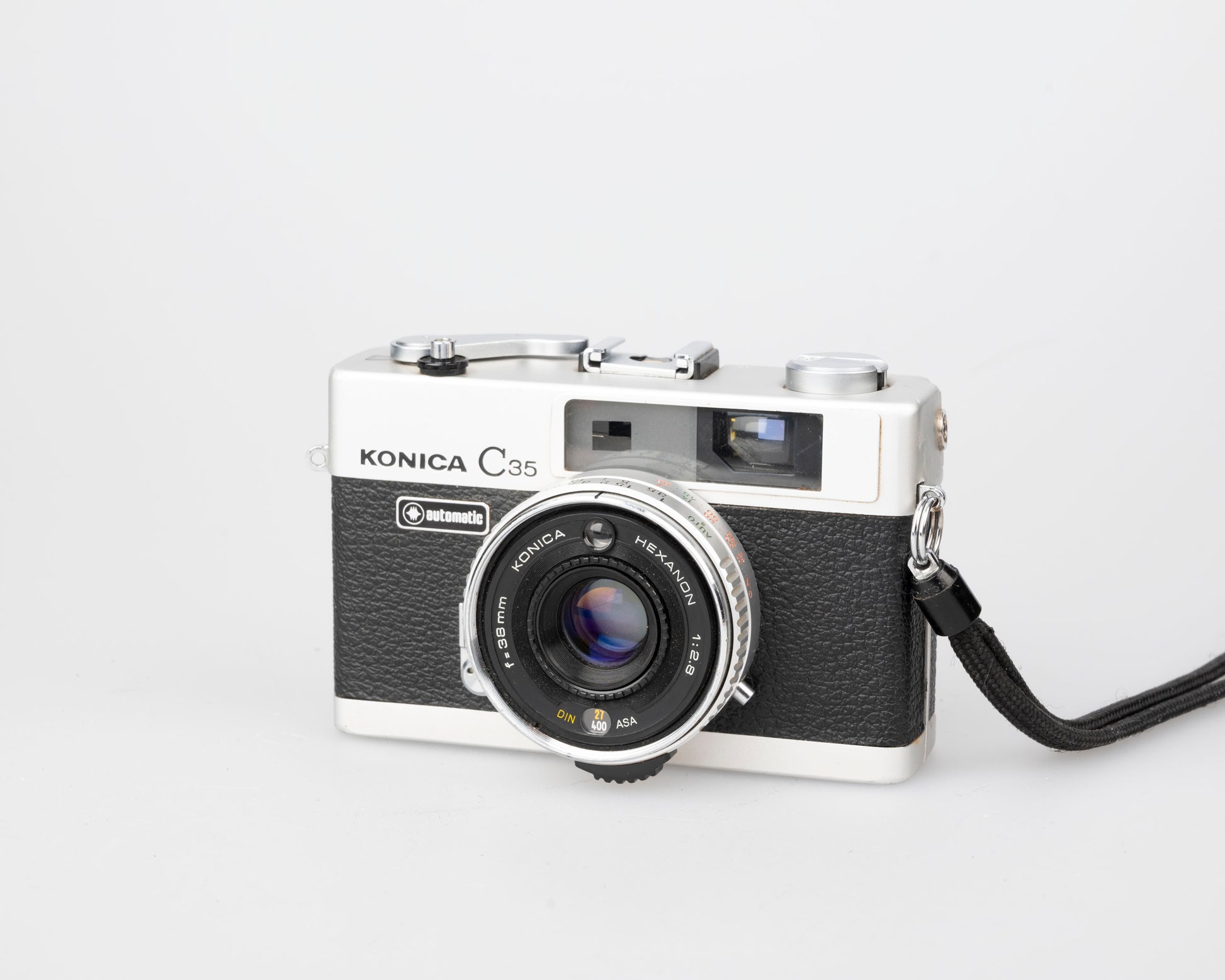 Le Konica C35 Automatic est un télémètre 35 mm très facile à utiliser datant d'environ 1972. Il est doté d'un objectif Hexanon 38 mm f2.8 très net, d'un télémètre lumineux facile à mettre au point et d'une exposition entièrement automatique.