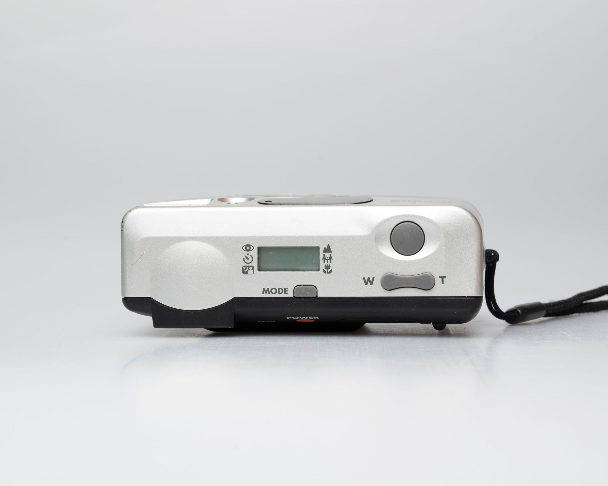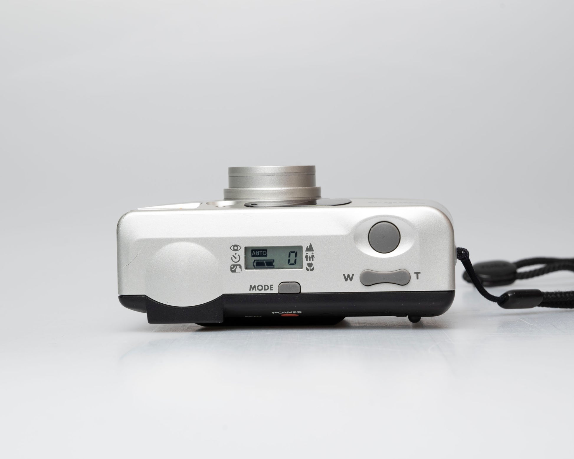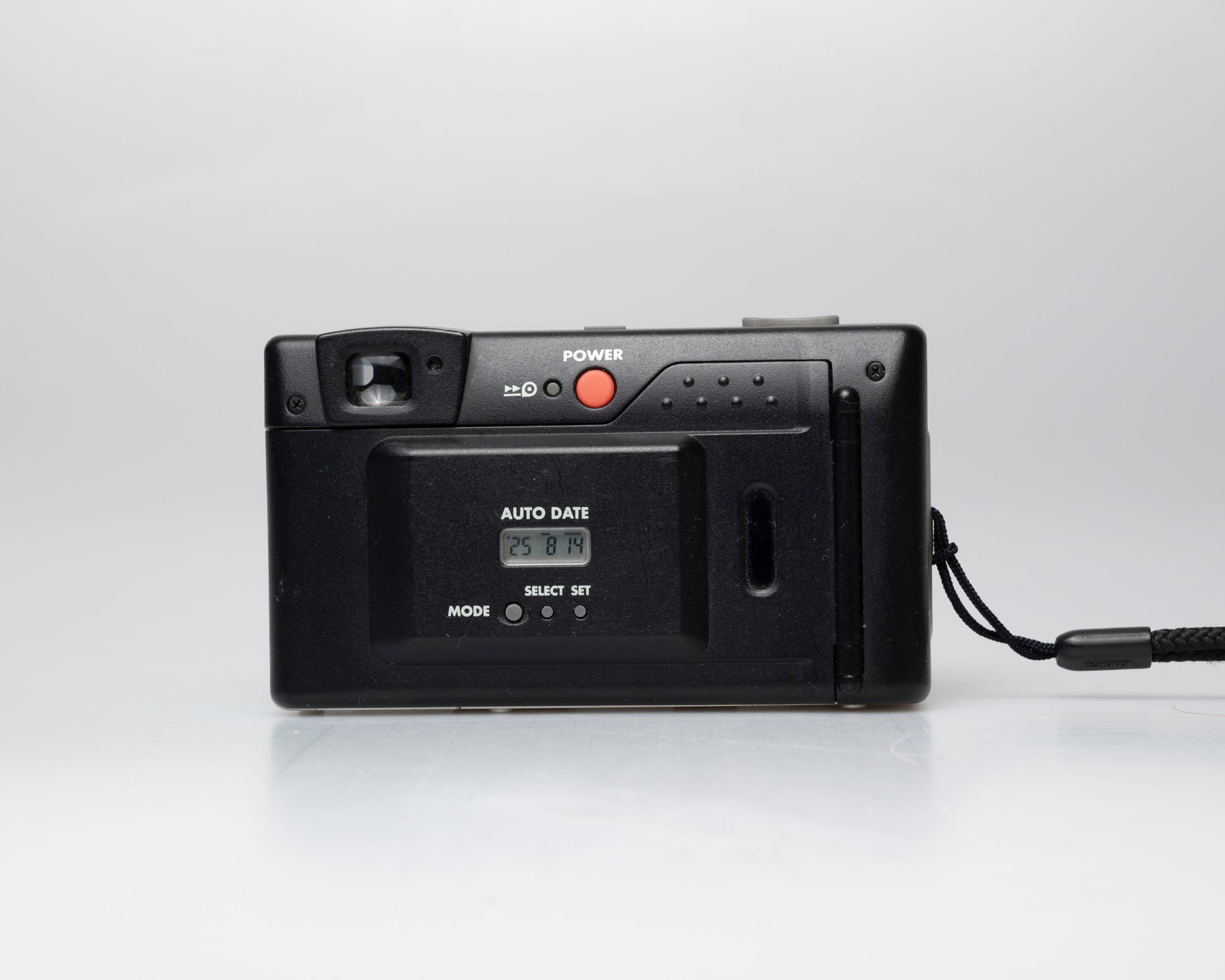 L'appareil photo a été testé avec une batterie et un film installés et a bien fonctionné (le film n'a pas été développé). Nous avons vérifié la précision de la mise au point de l'appareil photo sur un autocollimateur ; il montre un excellent pouvoir de résolution pour un appareil photo compact à zoom. Le boîtier de l'appareil présente quelques signes d'usure cosmétique, notamment une fissure fine sur le devant du boîtier de l'appareil et une partie de l'inscription étant usée (voir photos). Ces problèmes cosmétiques n'affectent pas la fonctionnalité de l'appareil photo.