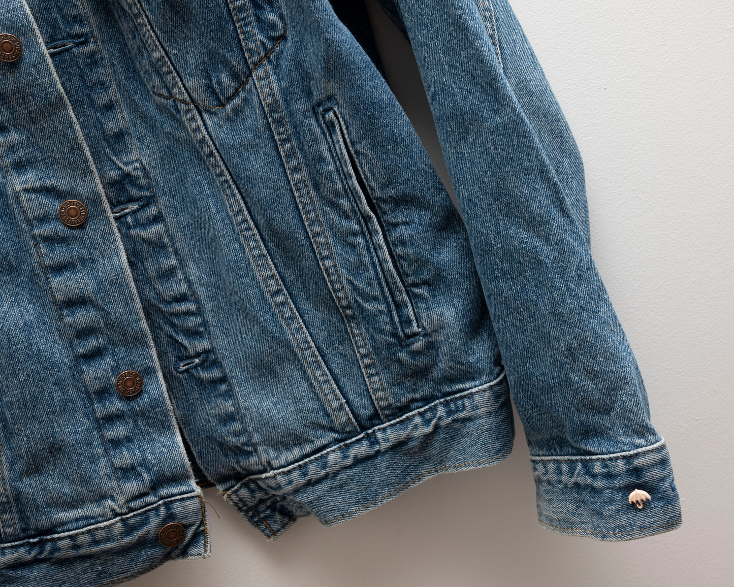 Il y a un petit bouton parapluie rose clair cousu sur le poignet gauche. Je l'ai laissé parce qu'il est mignon et original, mais nous sommes heureux de le retirer soigneusement sur demande avec un découseur.