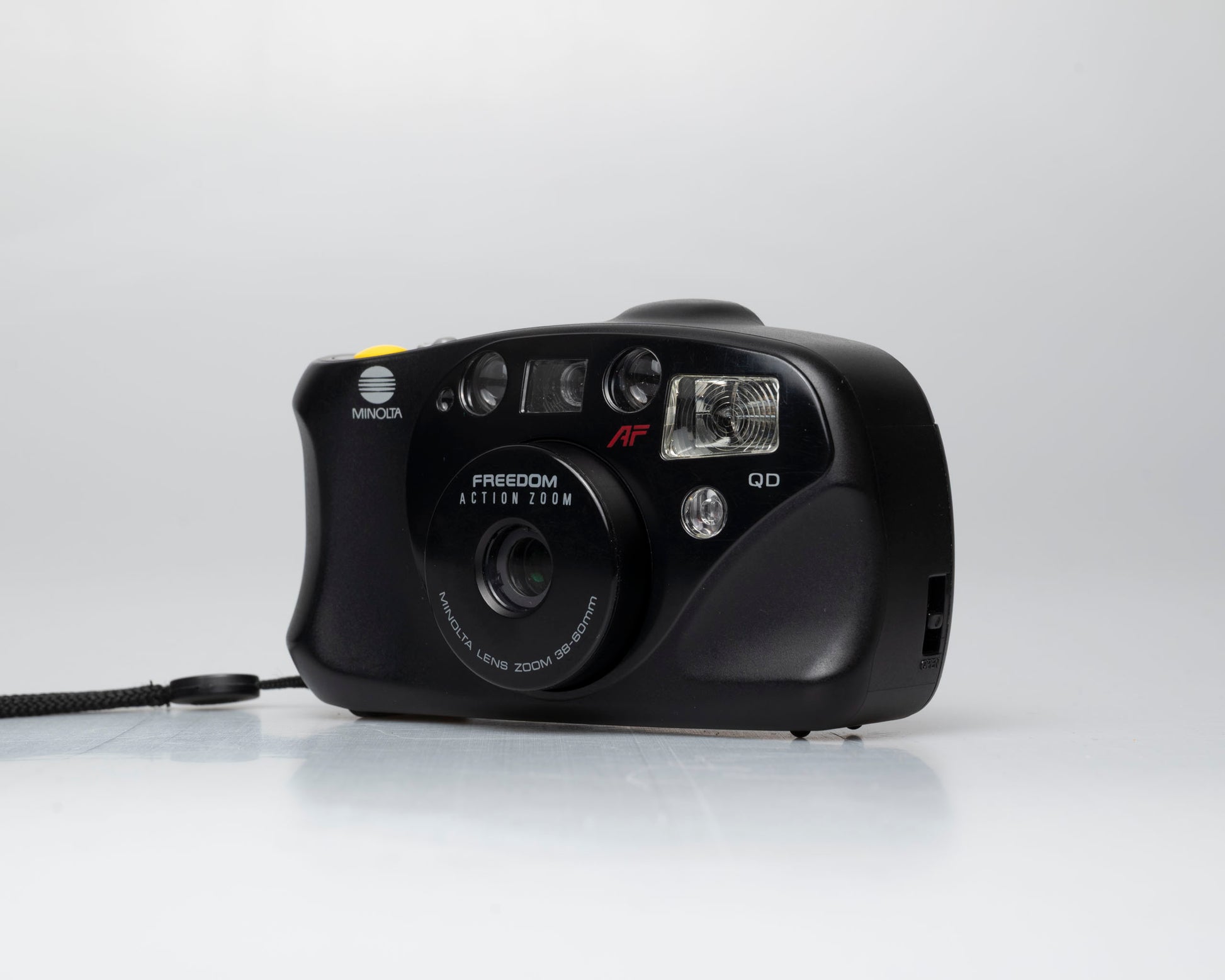 Le plus petit et le plus léger des appareils photo de sa catégorie, le Minolta Freedom Action Zoom vous offre l'avantage d'un objectif zoom puissant 38-60 mm super net, capable de gérer tout, des prises de vue grand angle aux portraits d'apparence naturelle. L'objectif nouvellement conçu offre un nouveau standard de performance avec une configuration plus compacte. Vos photos auront un contraste et des couleurs exceptionnels. Le viseur zoom automatiquement avec les changements de l'objectif pour vous donner un cadrage précis pour une composition plus efficace. Le Freedom Action Zoom permet également de photographier à 24 pouces de l'appareil photo et fournit une gamme complète de vitesses d'obturation automatiques de 1 seconde à 1/500 seconde. L'utilisation est simple et entièrement automatique : il suffit de pointer l'appareil photo sur votre sujet et de profiter des résultats lorsque votre film revient du photofinisseur.
