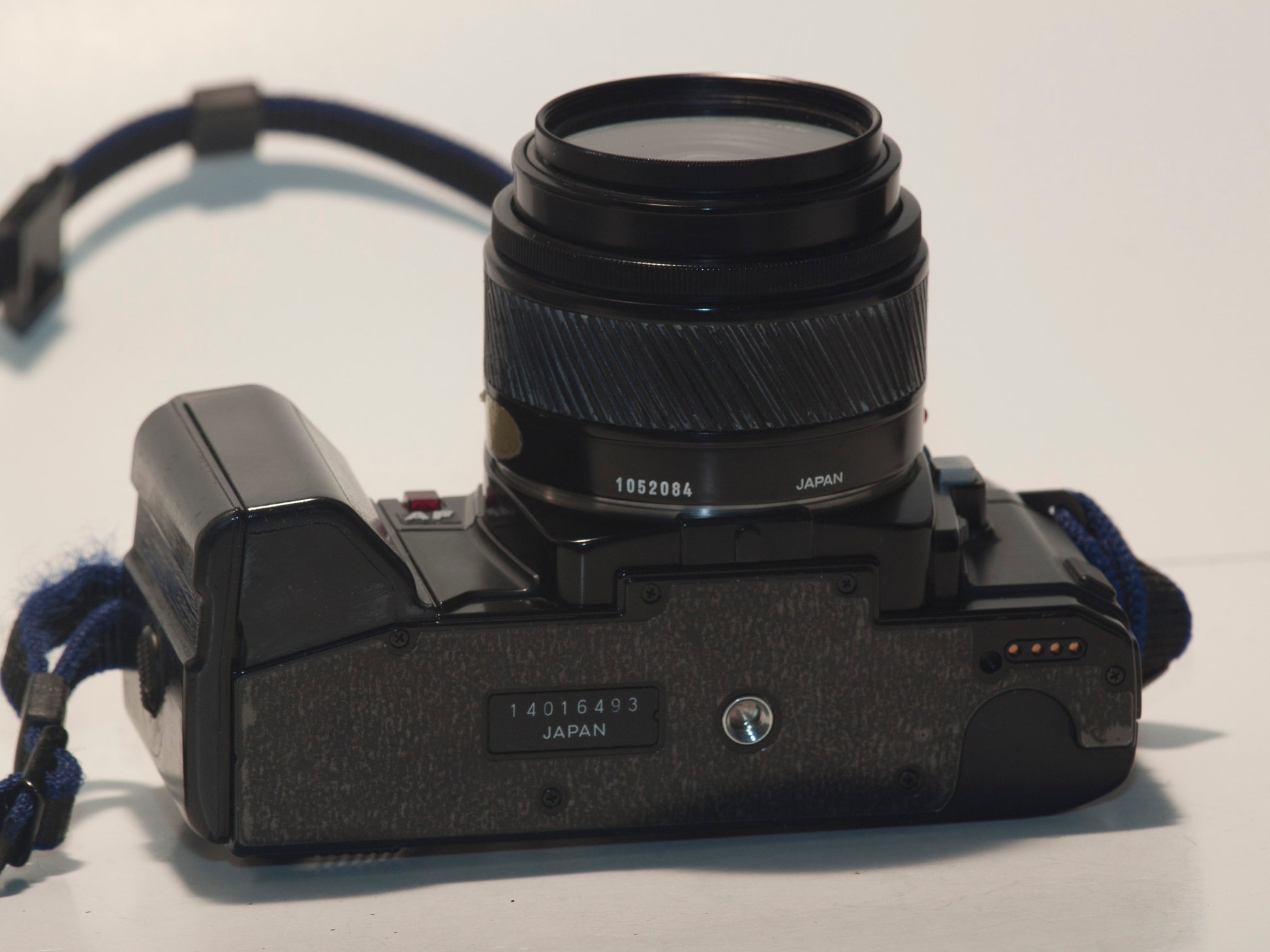L'appareil photo prend des objectifs à monture Minolta A qui continuent d'être utilisés dans les reflex numériques Sony Alpha d'aujourd'hui (Sony a fini par acheter la technologie d'appareil photo de Minolta). Cet exemple particulier (numéro de série 14016493) est l'une des versions les plus rares "x croisés" (Exxon a poursuivi Minolta à ce sujet). Il est livré avec un puissant flash Minolta AF 2800 (nombre guide 92ft @ ISO 100, prend en charge l'exposition TTL et fournit une assistance à la mise au point automatique en basse lumière) avec son boîtier et un objectif Minolta AF 28 mm f2.8 (5 éléments en 5 groupes) . Cet objectif grand angle est idéal pour la photographie de rue. La caméra est alimentée par quatre piles AAA (non incluses) ; le flash est alimenté par quatre piles AA (également non incluses).