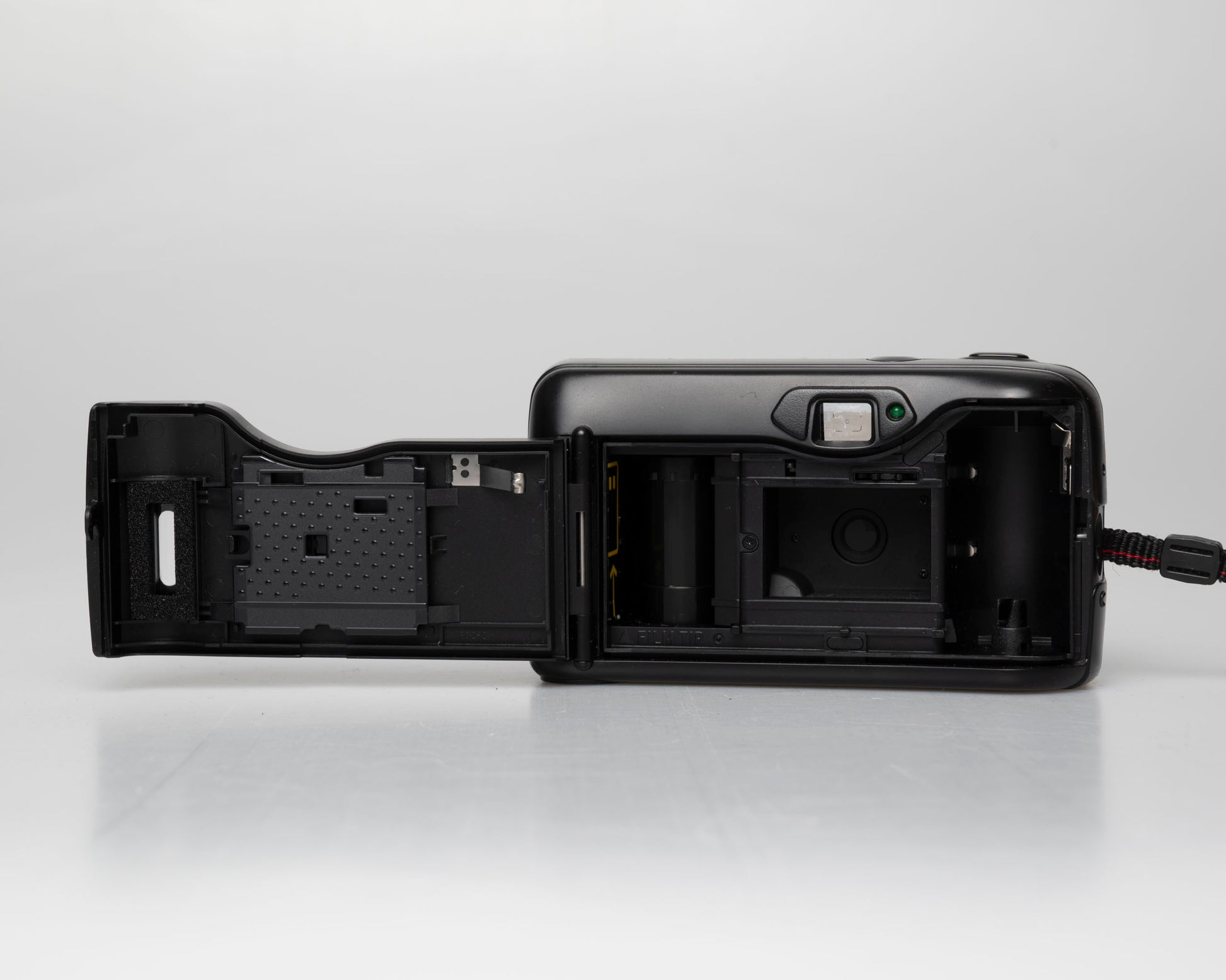 We tested the camera with film and batteries installed (we did not process the film) and all functions are working correctly. We verified both its autofocus and exposure accuracy. The camera is in good cosmetic condition (see photos) with some minor wear from use. The original Nikon case shows some wear from age (in particular, its leatherette piping is a slightly sticky, a very common issue with 90s camera cases).