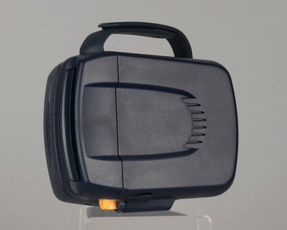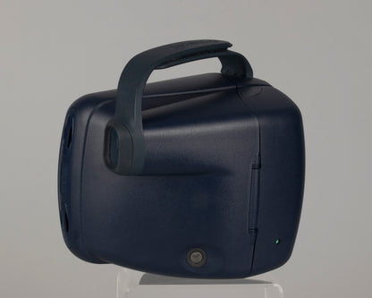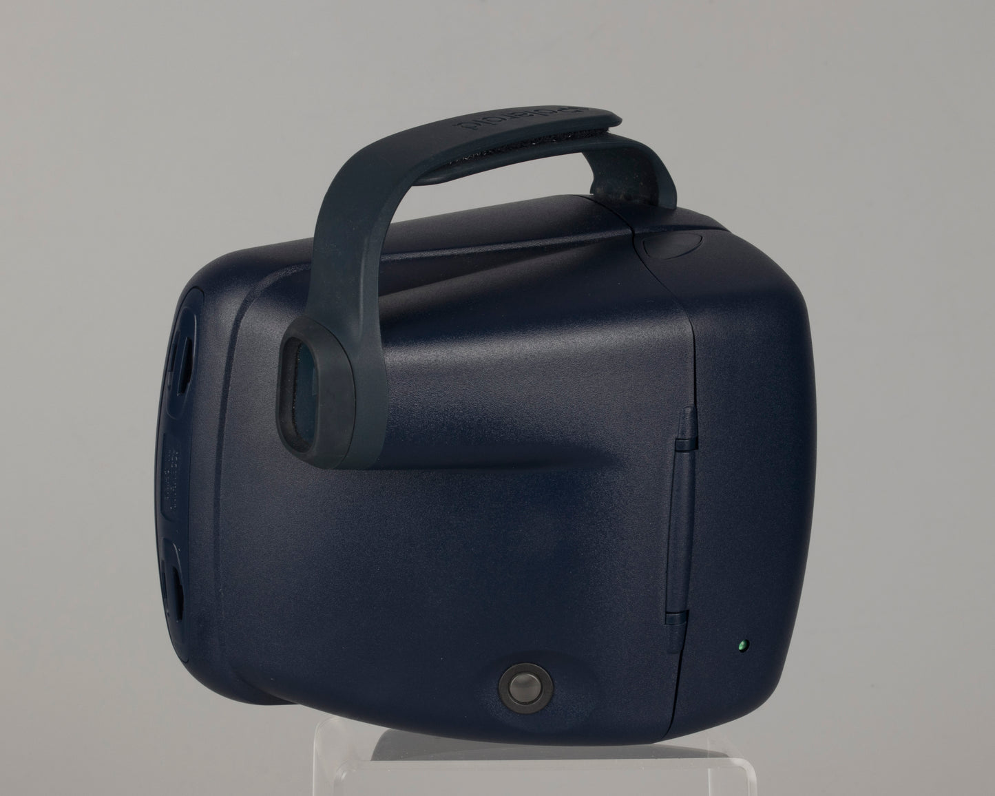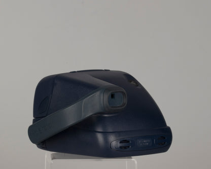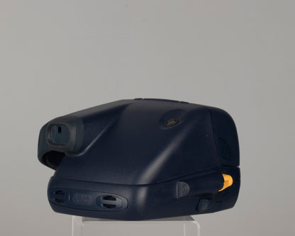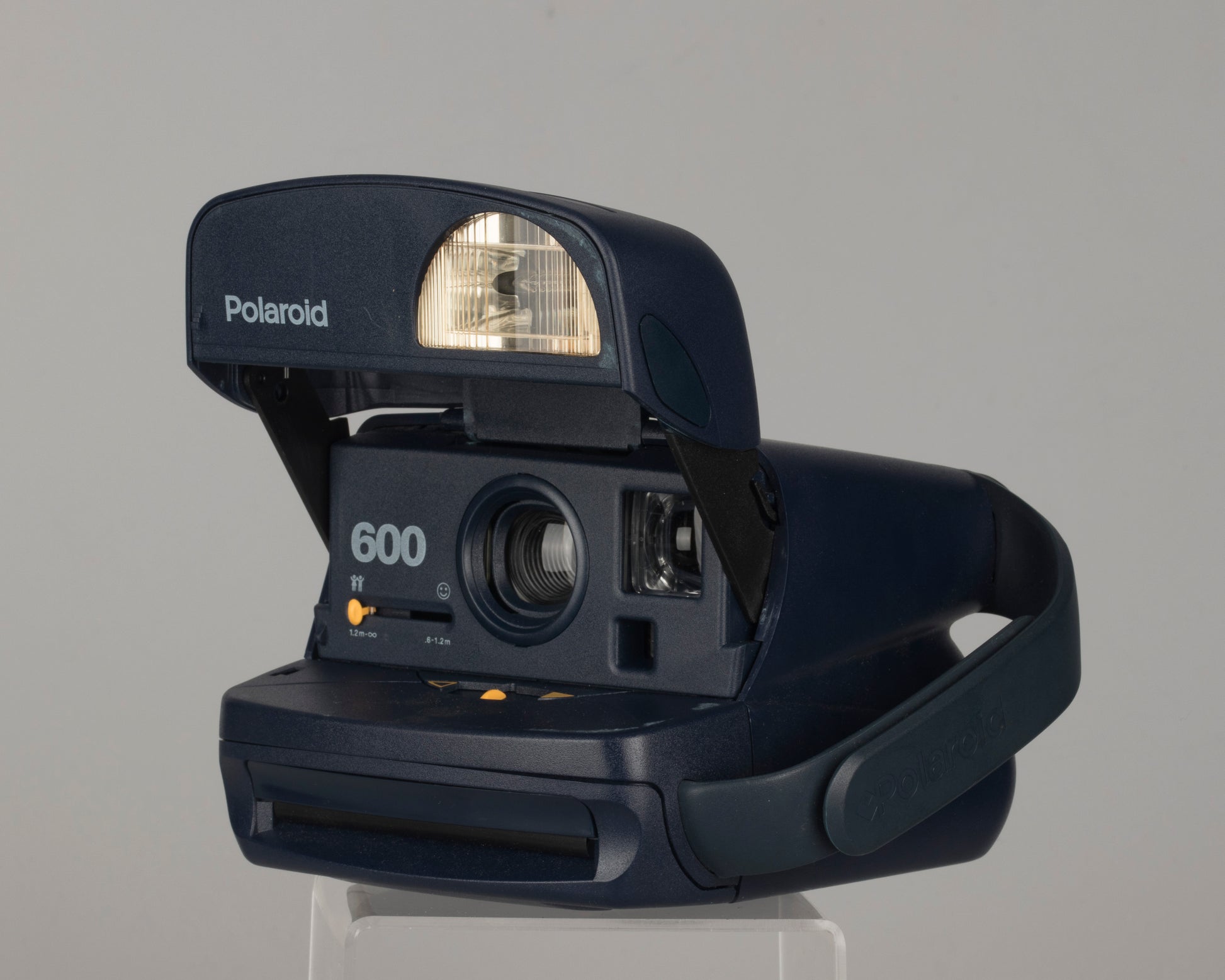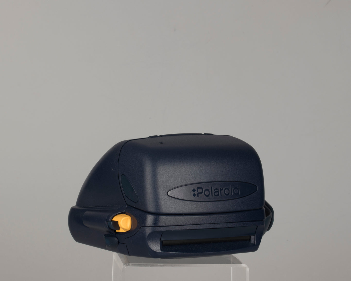 Le Polaroid 600 (également appelé OneStep Express) est un simple appareil photo instantané de la quatrième génération de modèles compatibles avec les films de type 600. Celui-ci présente un joli design bleu et jaune et un étui de transport sportif.