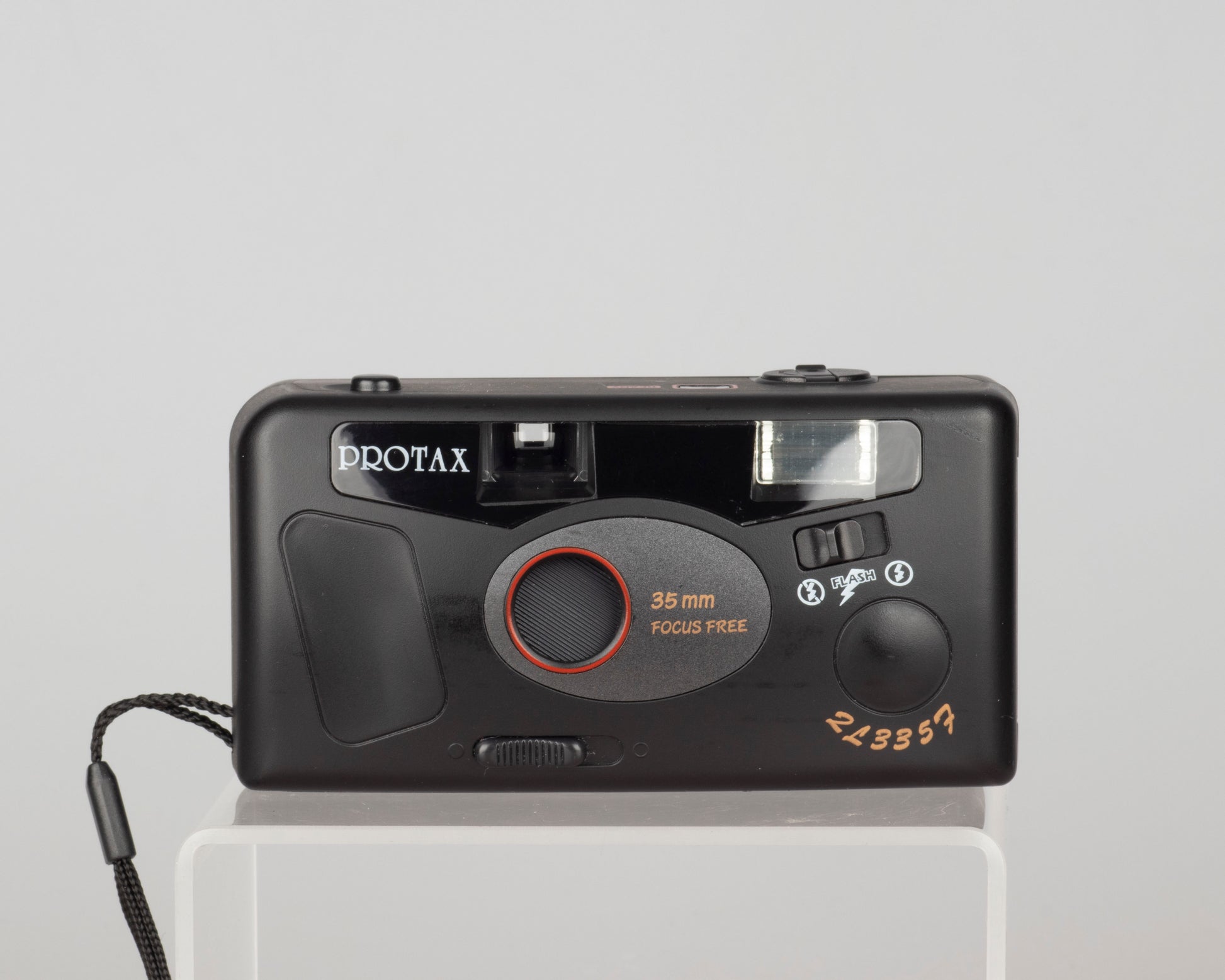 Le Protax 35 mm Focus Free est un appareil photo mécanique très simple avec un flash intégré.