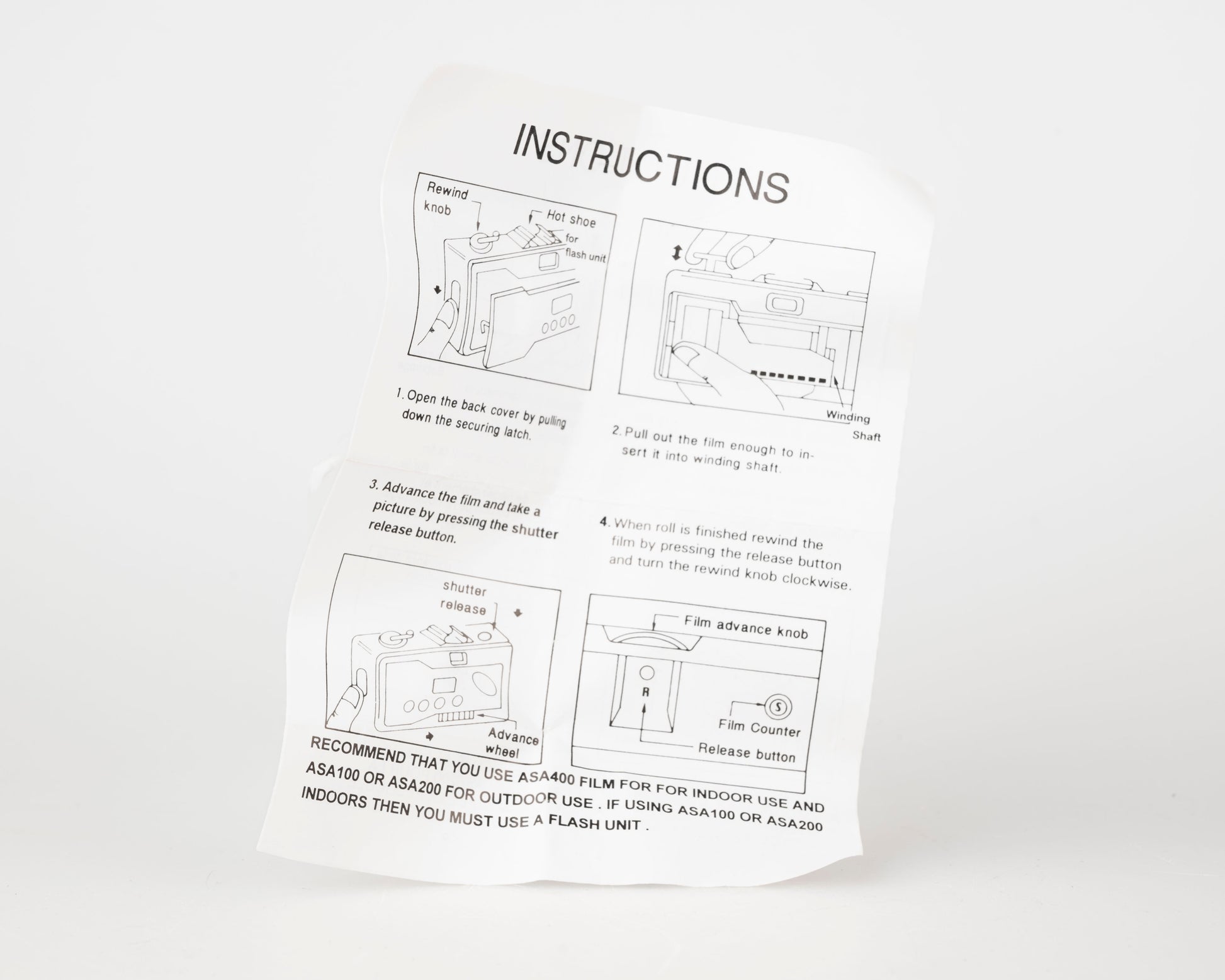 Le Suntone MM252 est un appareil photo 35 mm mécanique sans mise au point très basique qui offre une vitesse d'obturation et une ouverture uniques; il est destiné à être utilisé à l'extérieur avec un film négatif couleur 35 mm. Il ne nécessite pas de piles. Cet appareil photo comprend un sabot afin que n'importe quel flash d'appareil photo ordinaire puisse être utilisé pour rendre cet appareil photo utilisable dans les situations l.