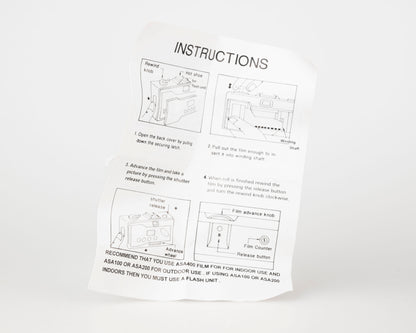 L'appareil photo est en très bon état (il semble inutilisé). Nous avons trouvé la porte du film un peu difficile à fermer (ça aide d'utiliser deux pouces). L'obturateur de l'appareil photo et le déclenchement du sabot fonctionnent correctement.