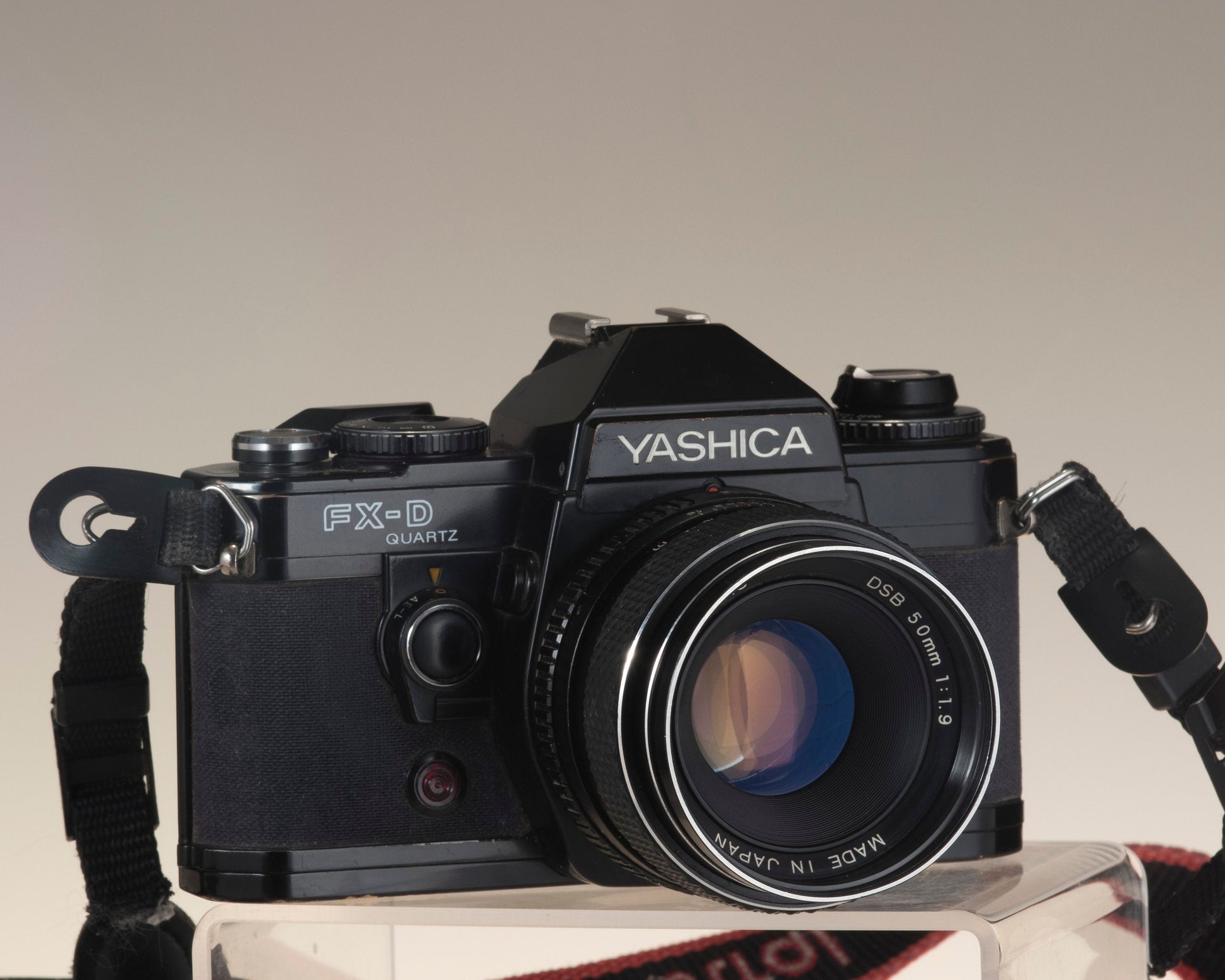 Le Yashica FX-X est un reflex à film 35 mm sophistiqué du début des années 1980 compatible avec l'excellente gamme d'objectifs à monture Contax/Yashica (y compris de nombreux anciens objectifs Carl Zeiss étonnants). L'objectif Yashica 50 mm f1.9 inclus est net et fluide pour la mise au point. Le FX-D partage des éléments de conception avec et est un appareil photo très similaire au Contax 139 plus connu.