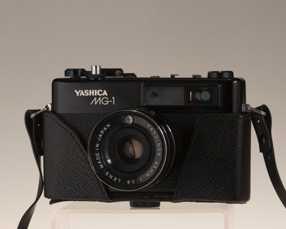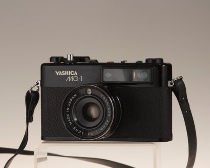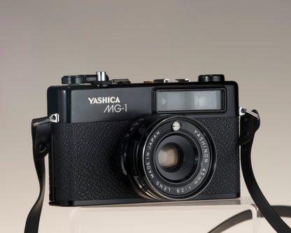 Le Yashica MG-1 est un appareil photo télémétrique 35 mm classique des années 1970. Il est parfois décrit comme un « Electro 35 simplifié », le petit frère du célèbre « appareil photo Spider-Man ». Cet appareil photo est équipé d'un objectif Yashinon 45 mm f / 2,8 net (4 éléments en 3 groupes), d'un télémètre couplé avec des repères corrects de parallaxe et d'une exposition prioritaire à l'ouverture.