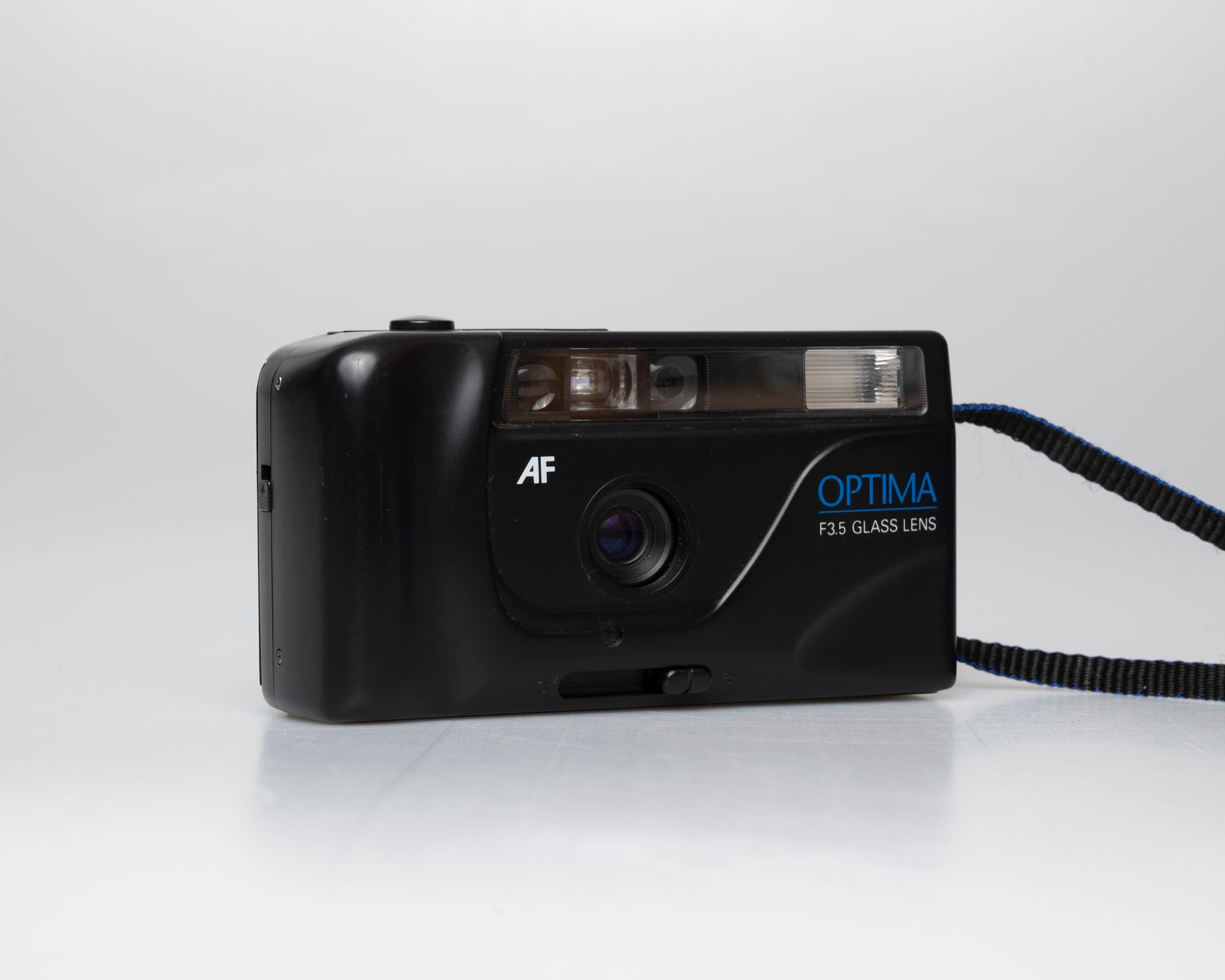 The Astral Optima AF is an easy-to-use 35mm camera from the 1990s featuring a 35mm f3.5 autofocus lens.