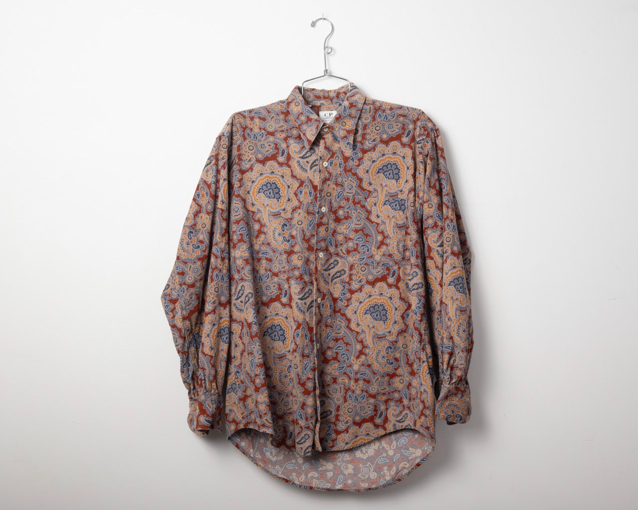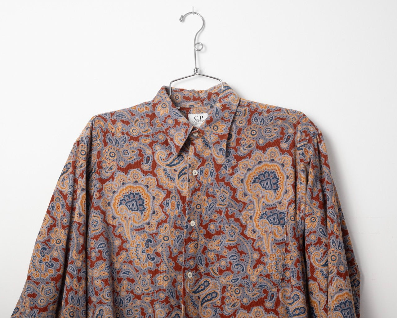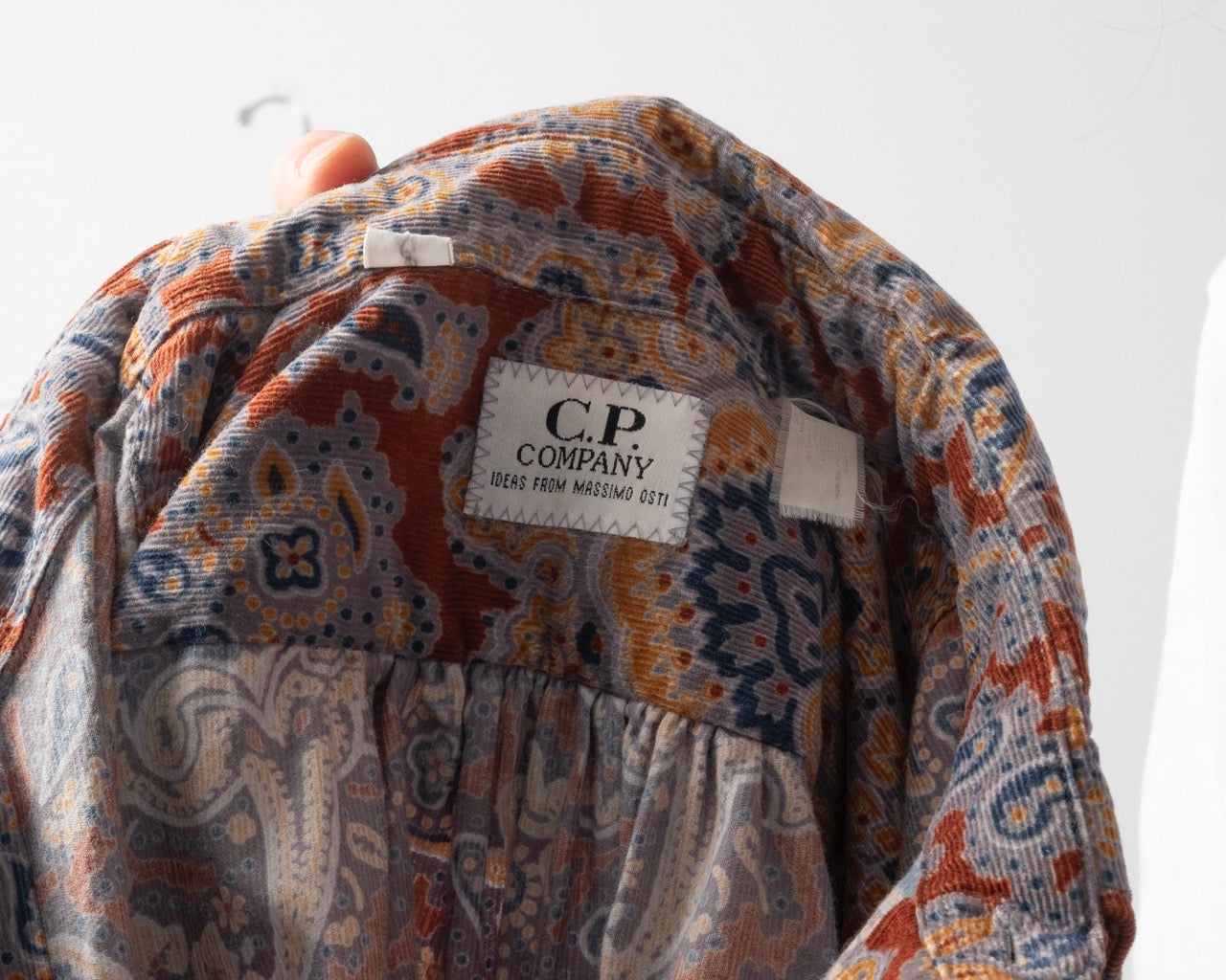 C.P. Company is one of Massimo Osti's companies. This paisley cotton corduroy shirt is most likely from the 90s. Made in Italy.