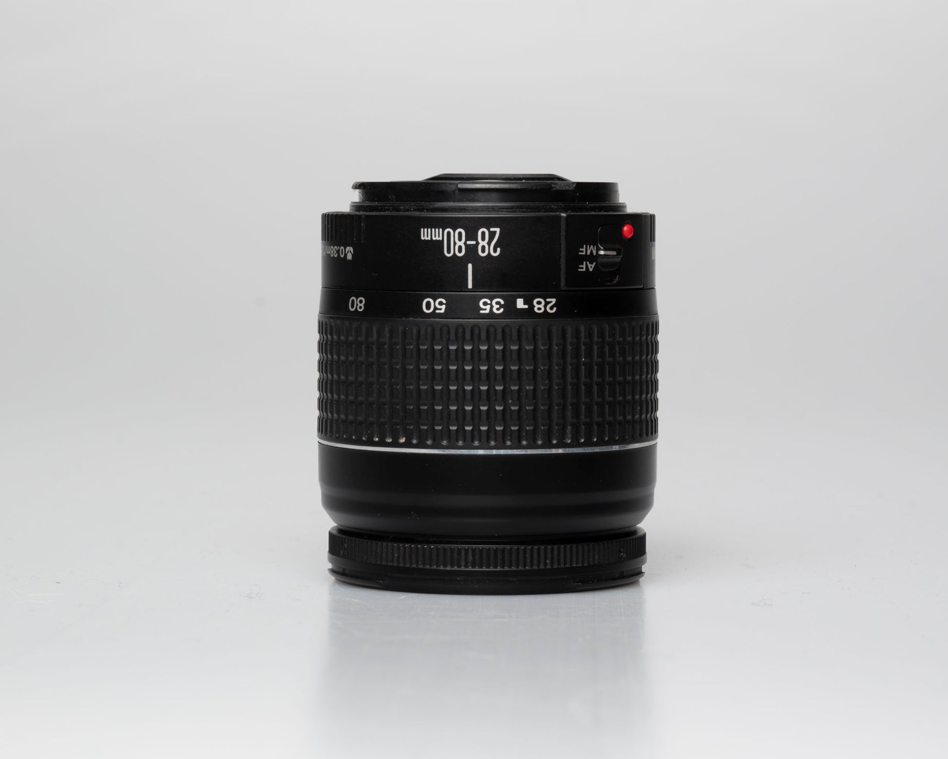 Note: The included Canon EF 28-80mm lens has a couple of small chips on its bayonet base and its autofocus motor is a bit noisy. This did not affect its connection or functionality in our testing but we discounted the camera to account for the blemishes and nuisance of noisy focusing.