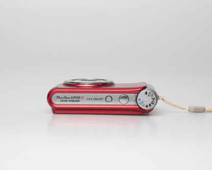 The Canon PowerShot A3100 IS, featuring a 4x zoom lens and a high-resolution 12.1-megapixel CCD sensor, marks the first model in the PowerShot A series to employ a rechargeable lithium-ion battery for extended battery life. Compared with its predecessor, the A1100 IS released in February 2009, the A3100 IS has a body design measuring approximately 2.9 mm thinner and weighing approximately 47 grams lighter, and also enables the shooting of up to approximately 100 more photos between recharges. The model features an alumite-finish aluminum front cover for a sophisticated look and feel and enlarged rear-panel buttons for improved ease of operation.