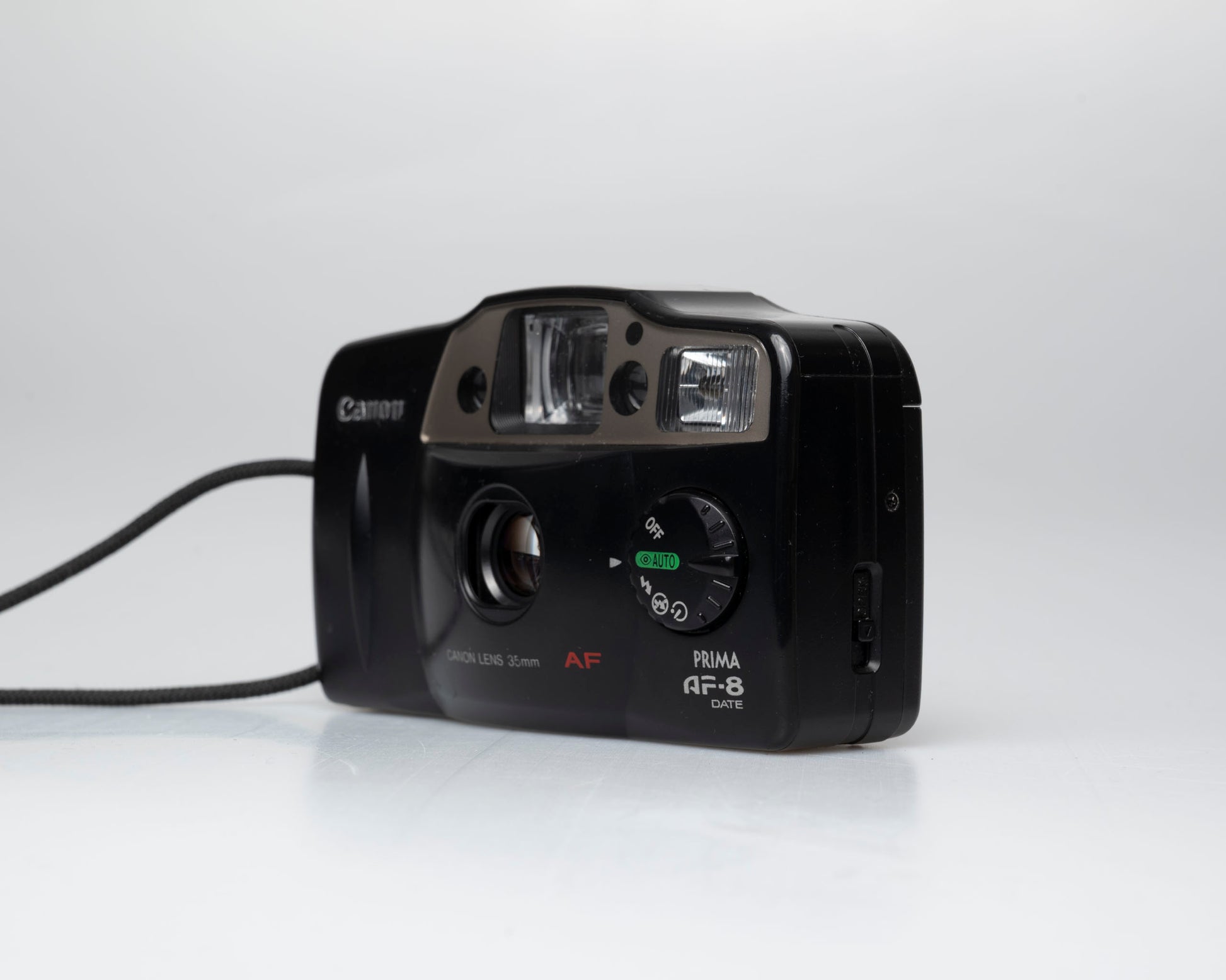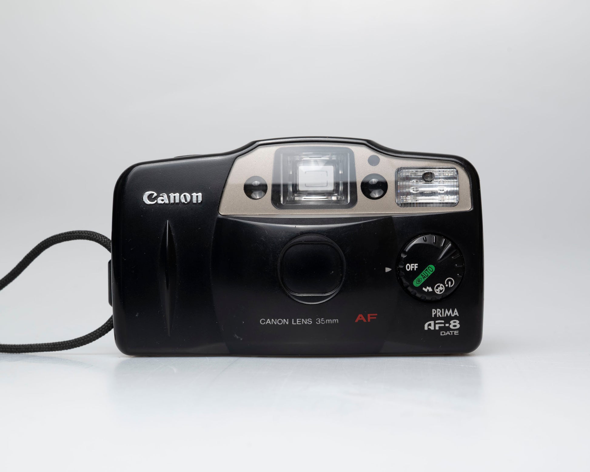 Released in 1997, the Canon Prima AF-8 Date (called the Sure Shot Owl in some countries) is a well-designed compact 35mm camera with a nice, sharp fixed 35mm lens. It's a subtle update from 1994's already-excellent Prima AF-7 (confusingly also called the Sure Shot Owl) with main difference being the new easy-to-use mode dial.