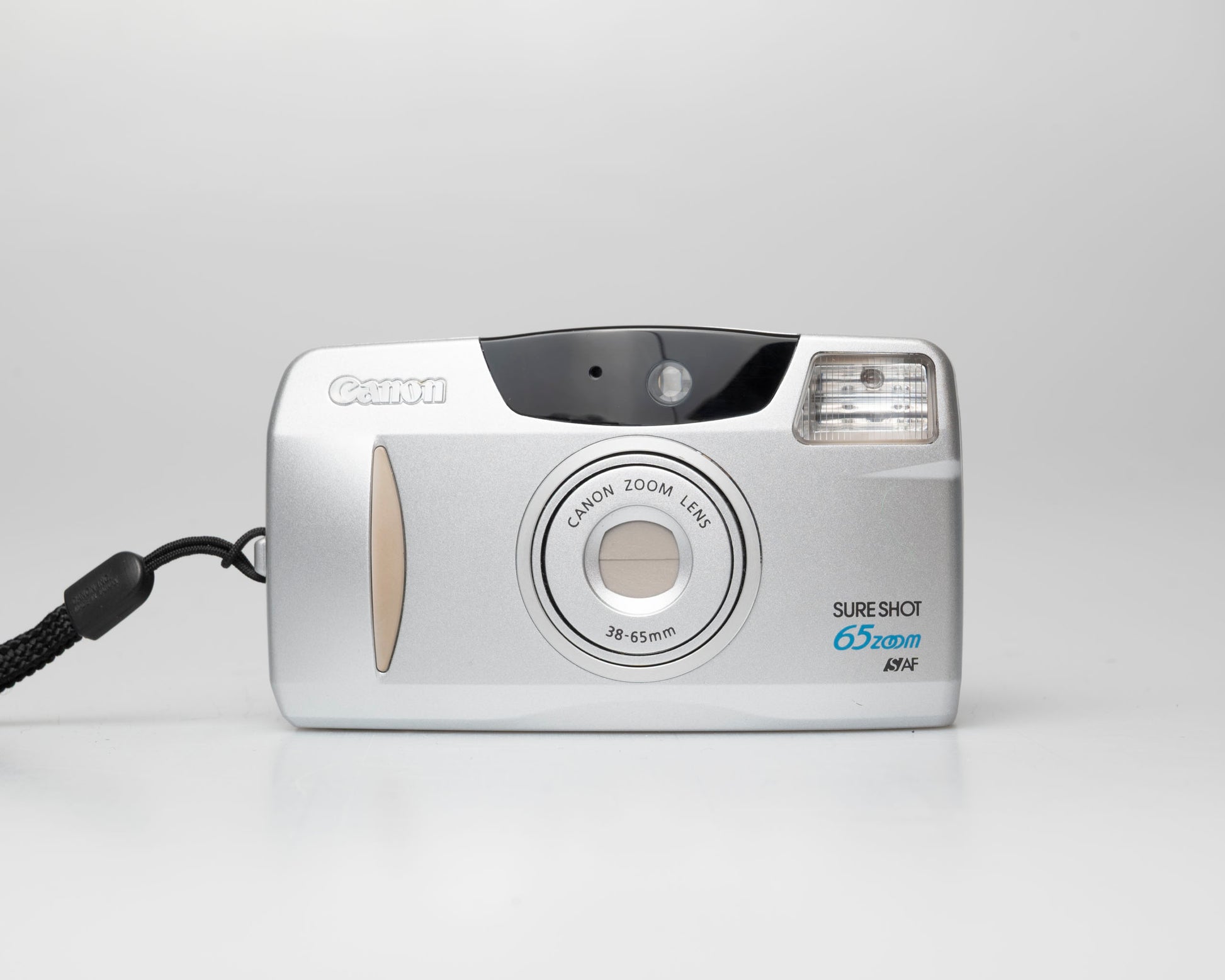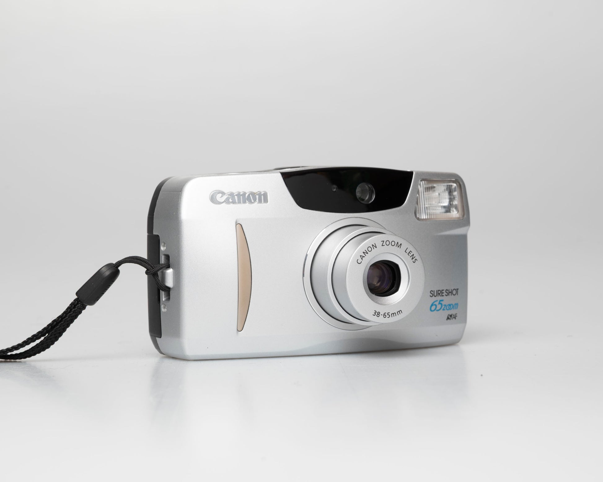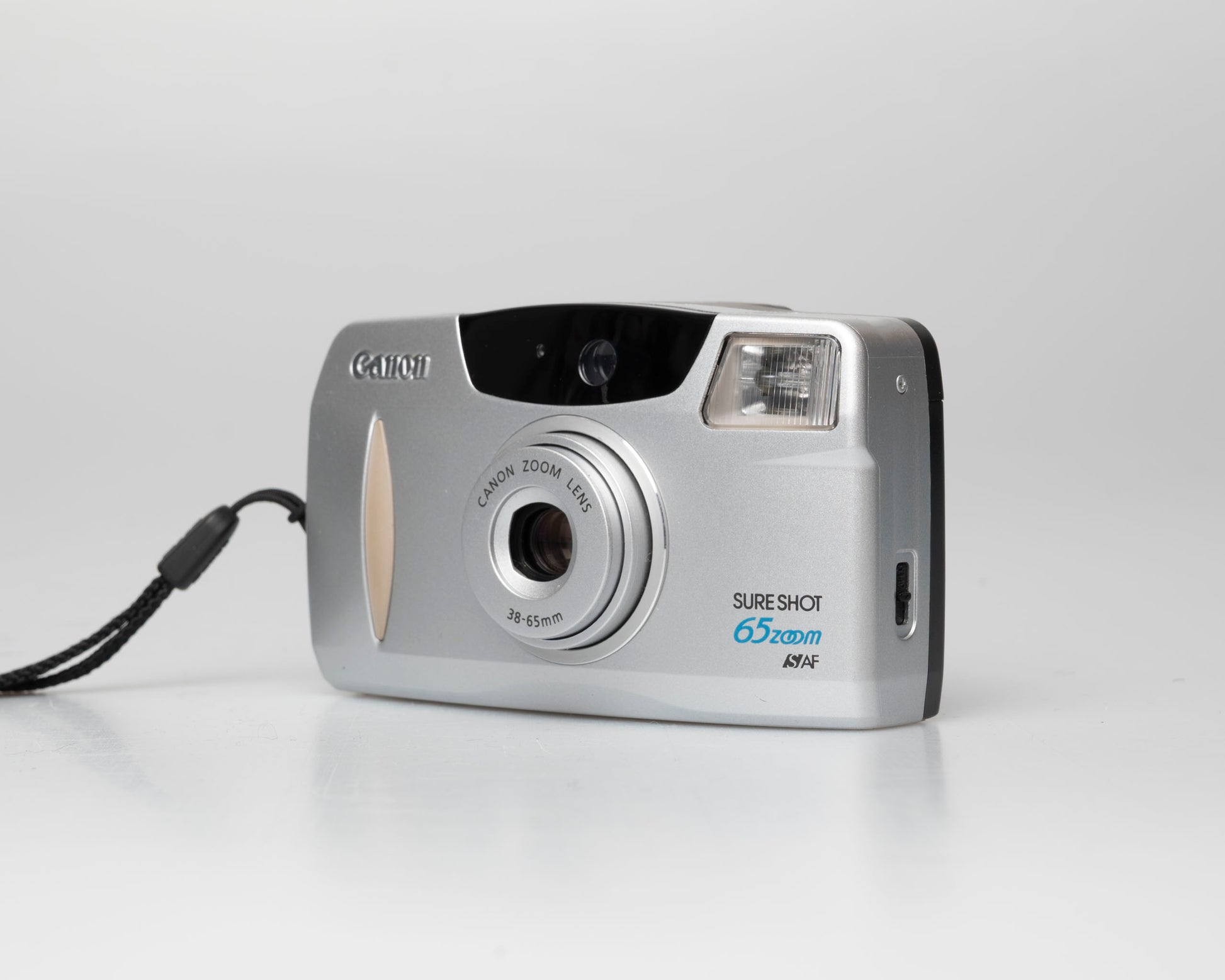 This is a later model in the great Canon Sure Shot series of point-and-shoot 35mm cameras. The Sure Shot Zoom 65 (called the Prima Zoom 65 in some countries) is a lightweight camera with a very easy-to-use mode selector dial in the back. We particularly like how it gives quick access to a 'no flash' mode. It features a flexible 38-65mm zoom lens.