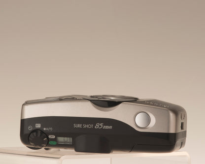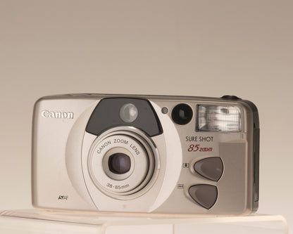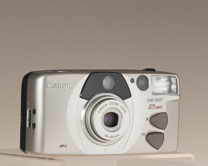 This is a later and good quality model in the great Canon Sure Shot series of point-and-shoot 35mm cameras. The Sure Shot 85 Zoom was called the Prima Zoom 85 in Europe and the Autoboy Luna 85 in Japan.