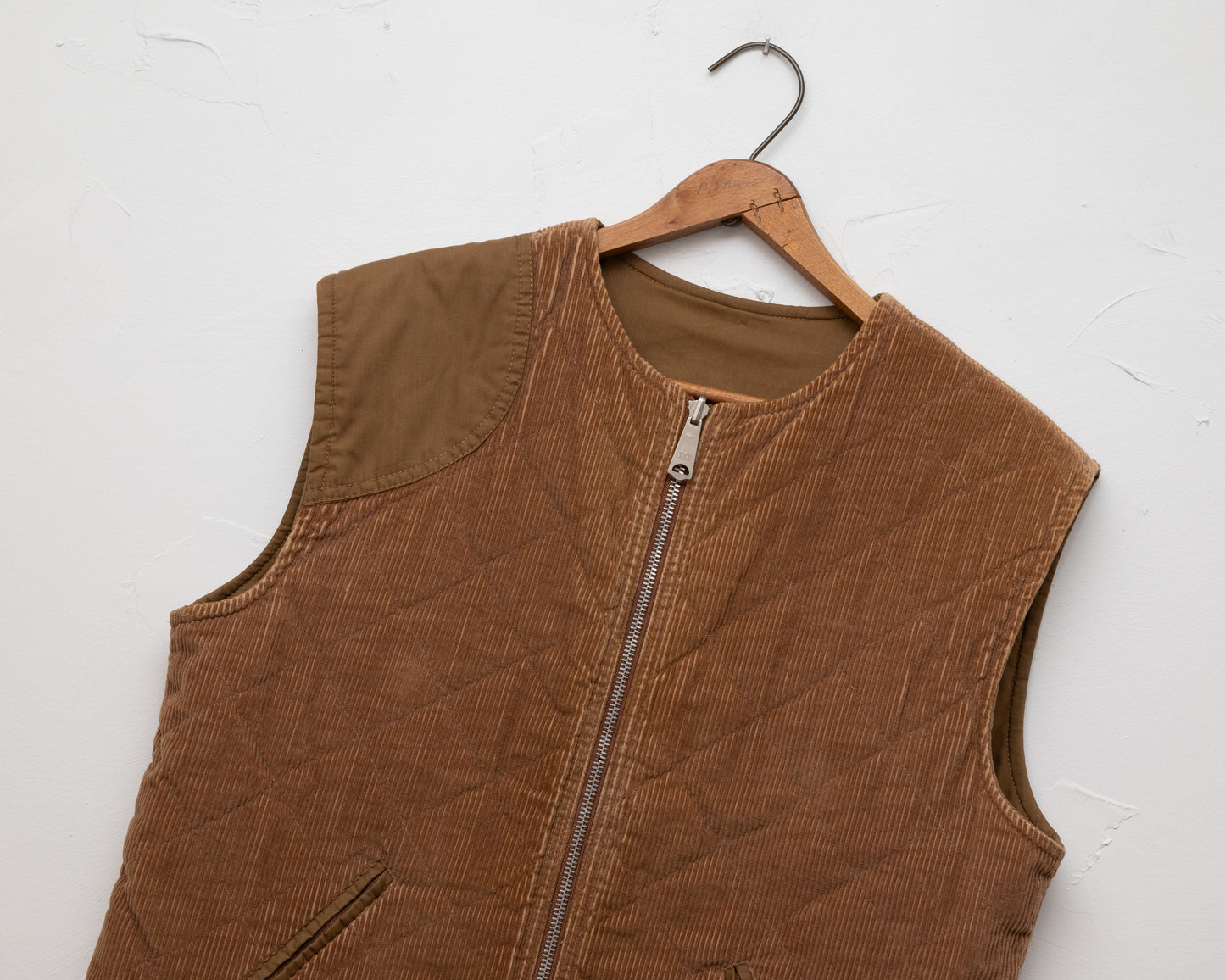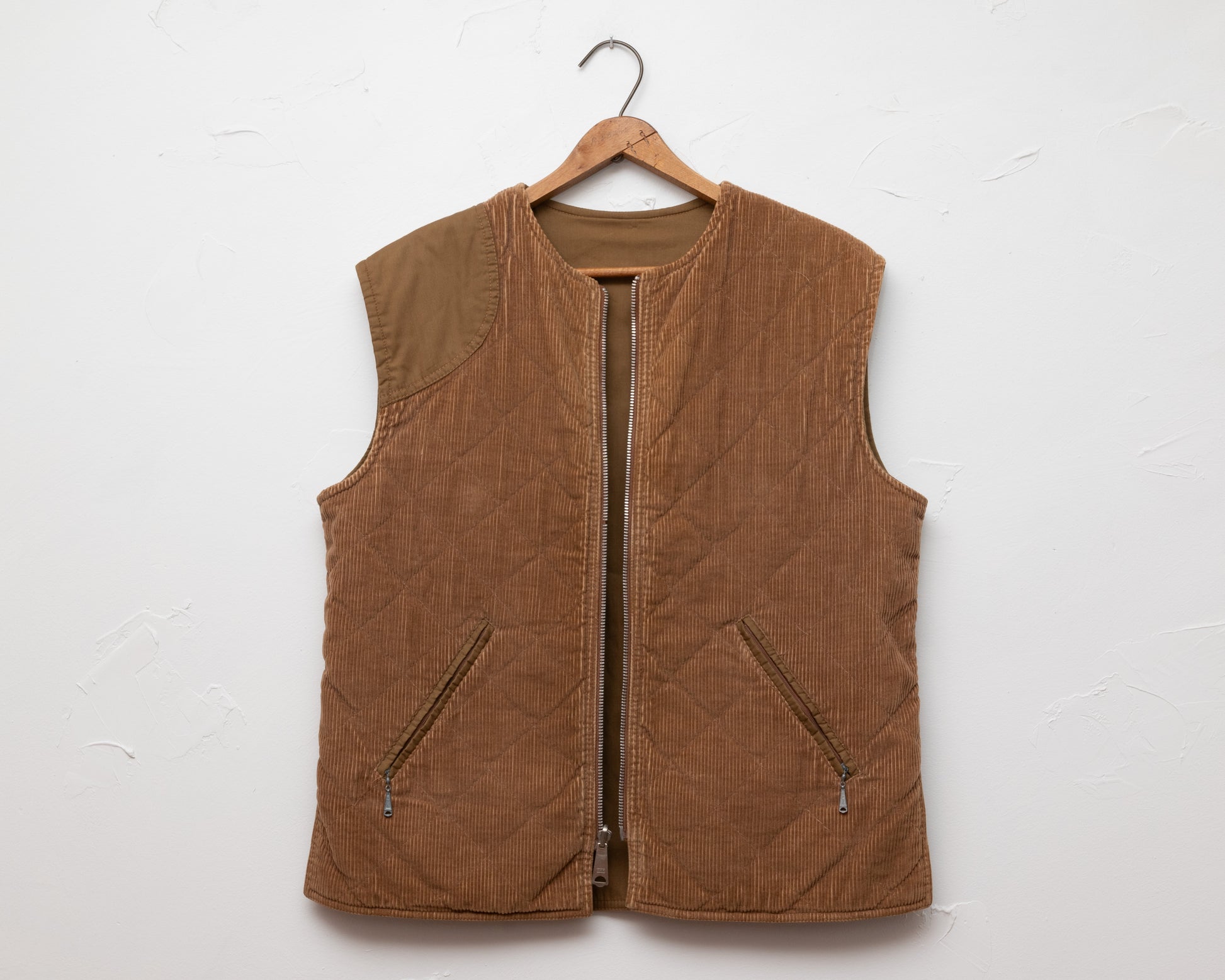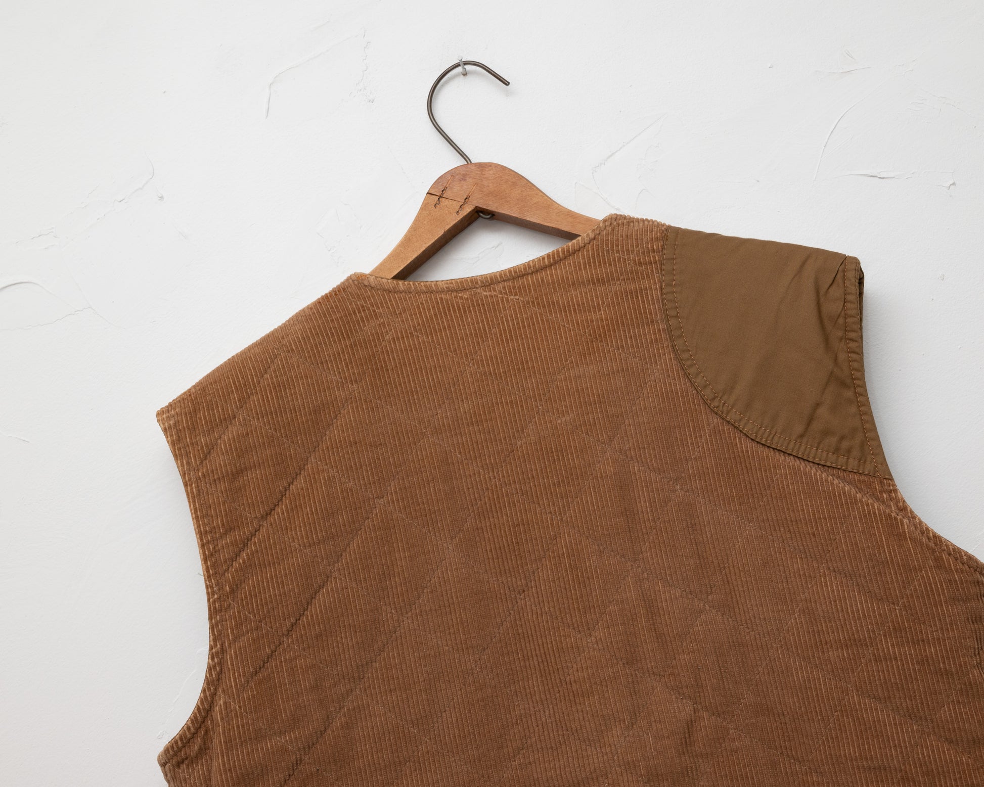 Daniel Hechter blessed the earth with a perfect fall layer — tonal brown corduroy and twill, lightly quilted, adorned with pockets, reversible. Measurements: pit-to-pit 20", length along back 23.5".