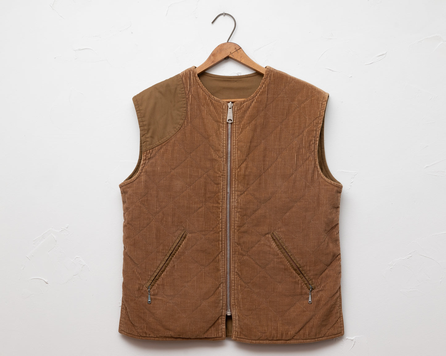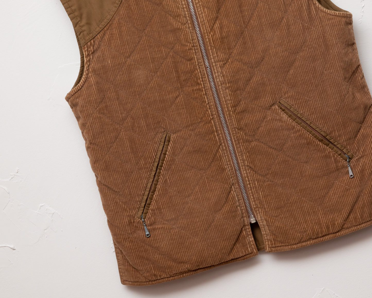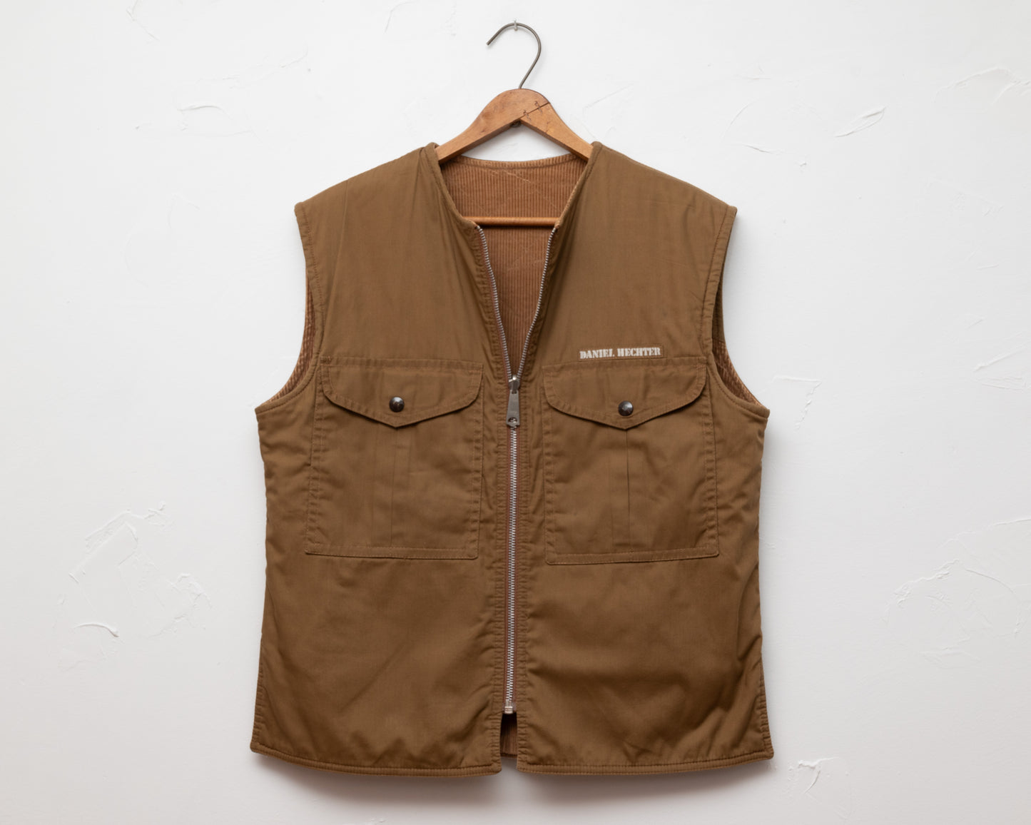 Daniel Hechter blessed the earth with a perfect fall layer — tonal brown corduroy and twill, lightly quilted, adorned with pockets, reversible. Measurements: pit-to-pit 20", length along back 23.5".