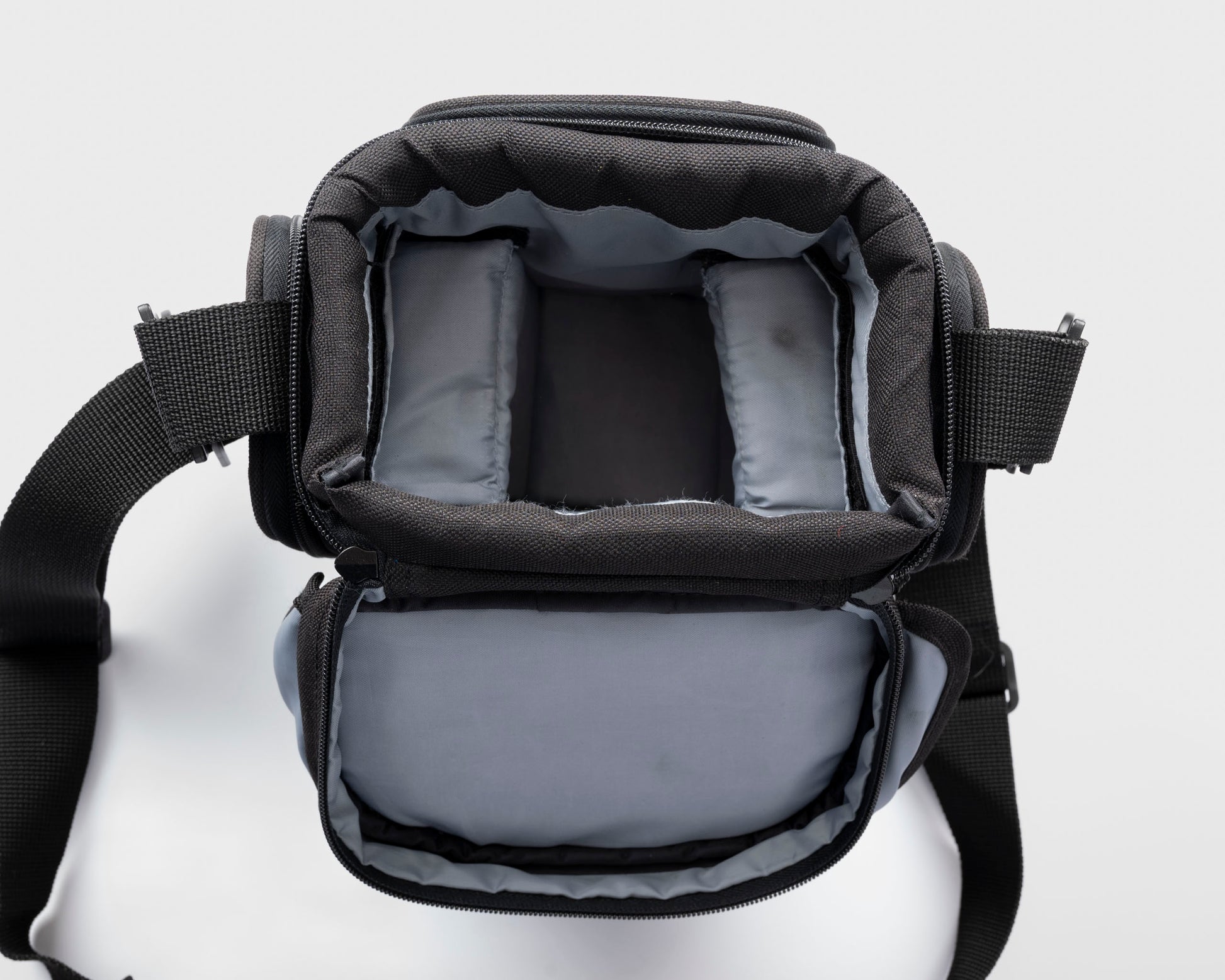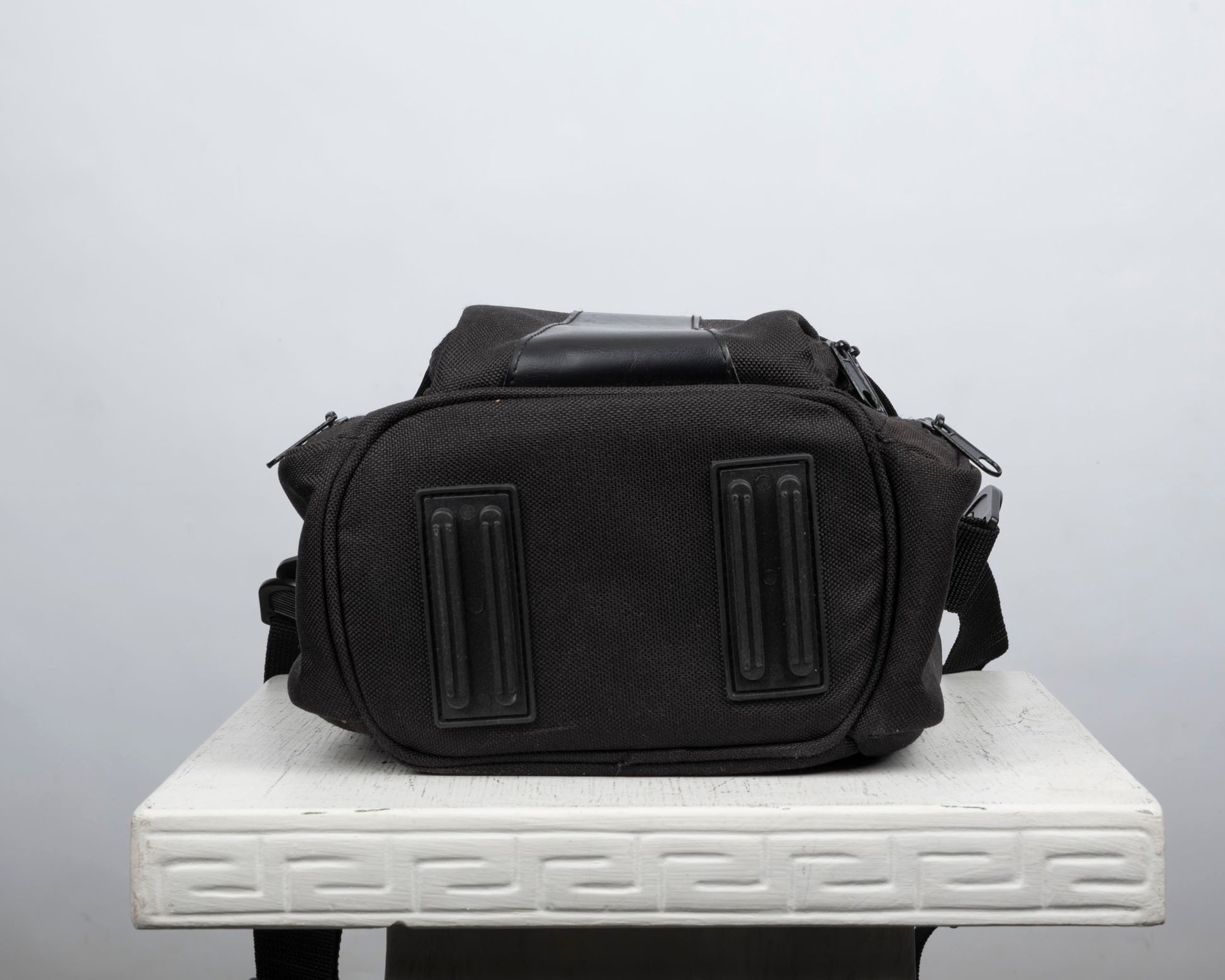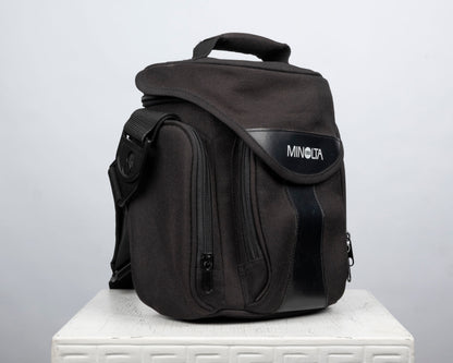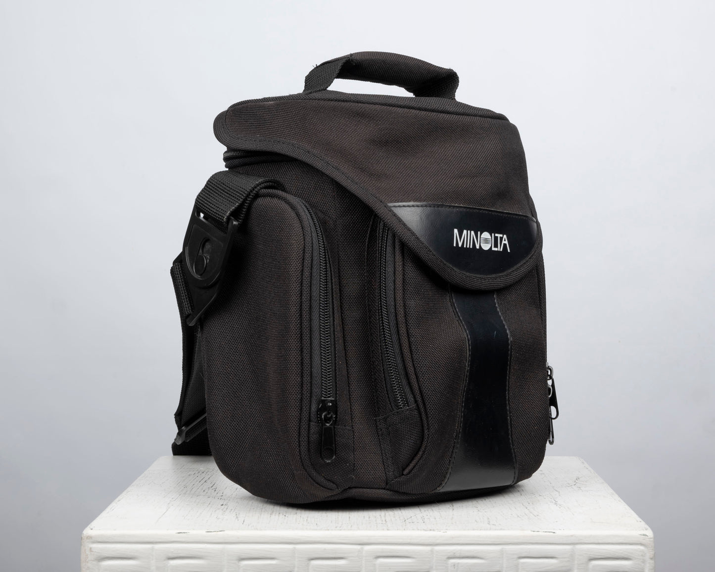 This is a vintage late 1990s compact Minolta camera shoulder bag. It was released around the same time as the company's later, lightweight SLRs (eg Maxxum 5, Maxxum QTsi). It features an adjustable main compartment as well as zippered front and side pockets.