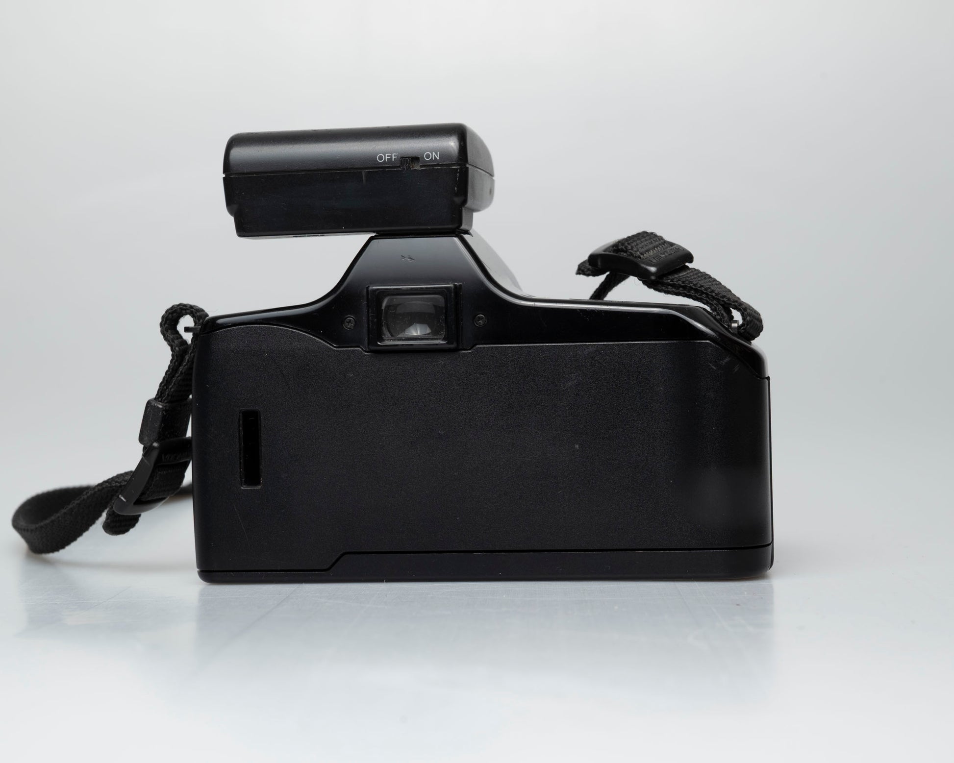 This is an "auto everything" camera: you just need to frame the shot and push the shutter button and you'll get a sharp well-exposed image. It is, without a doubt, the easiest-to-use film SLR we have ever tested. The camera and lens combo does allow for manual focus use if desired. The camera uses a beeping sound to confirm focus (this cannot be switched off).