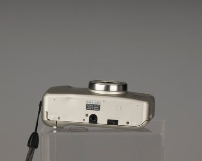 The Minolta Freedom Zoom 150 (aka Riva Zoom 150) is a very compact but high quality point-and-shoot 35mm film camera with an unusually wide zoom range for its size (37.5-150mm). The lens is a sophisticated design, made up of six elements in six groups and aspherical glass to minimize aberrations.