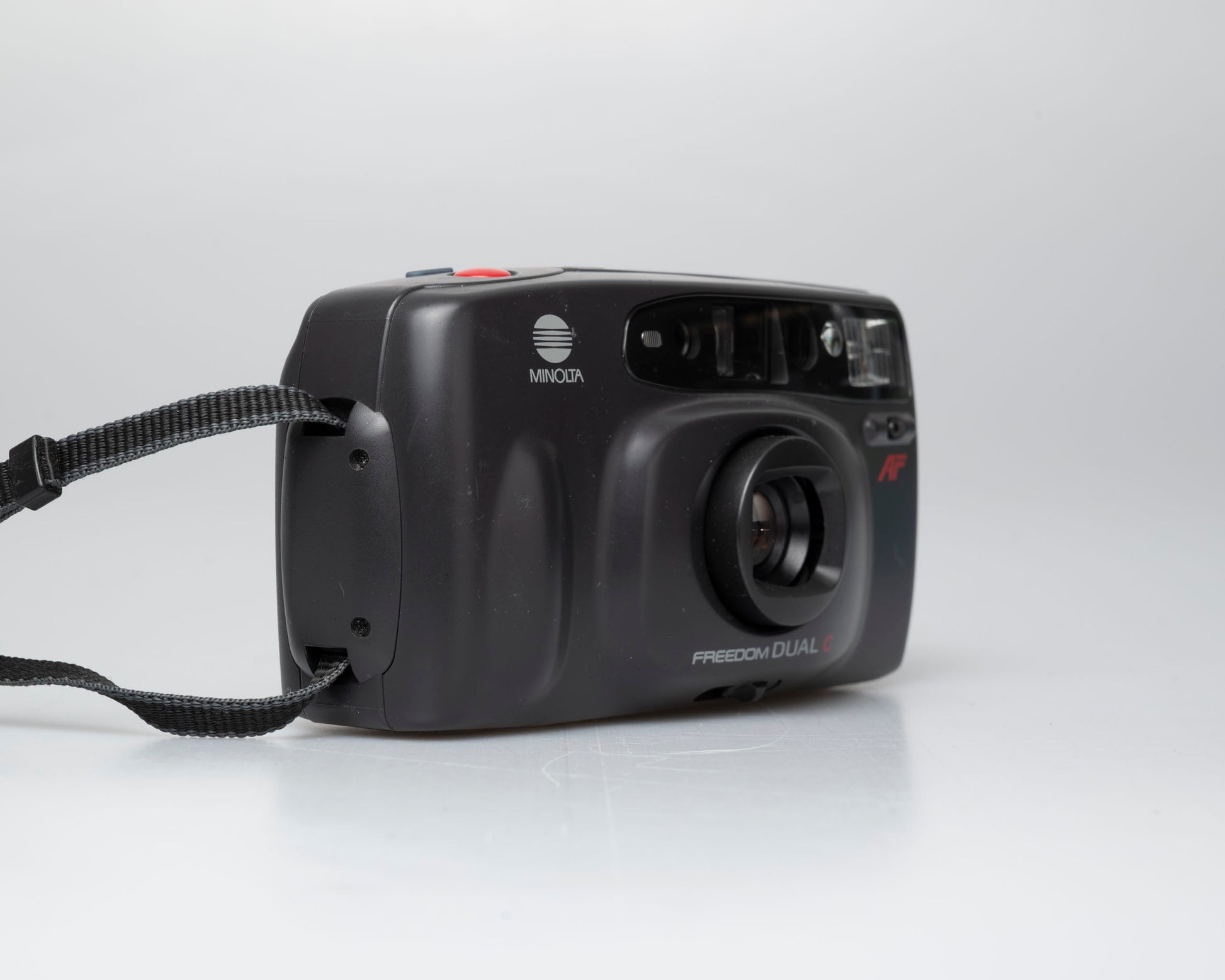 The Minolta Freedom Dual C (also known as the Riva Twin 28) is a dual lens 35mm point-and-shoot from the early 1990s. We're big fans of dual lens cameras for this era and this Minolta offers and interesting twist of the theme by offer a wider angles than most of the competition: it gives you the choice between a 28mm and 40mm.