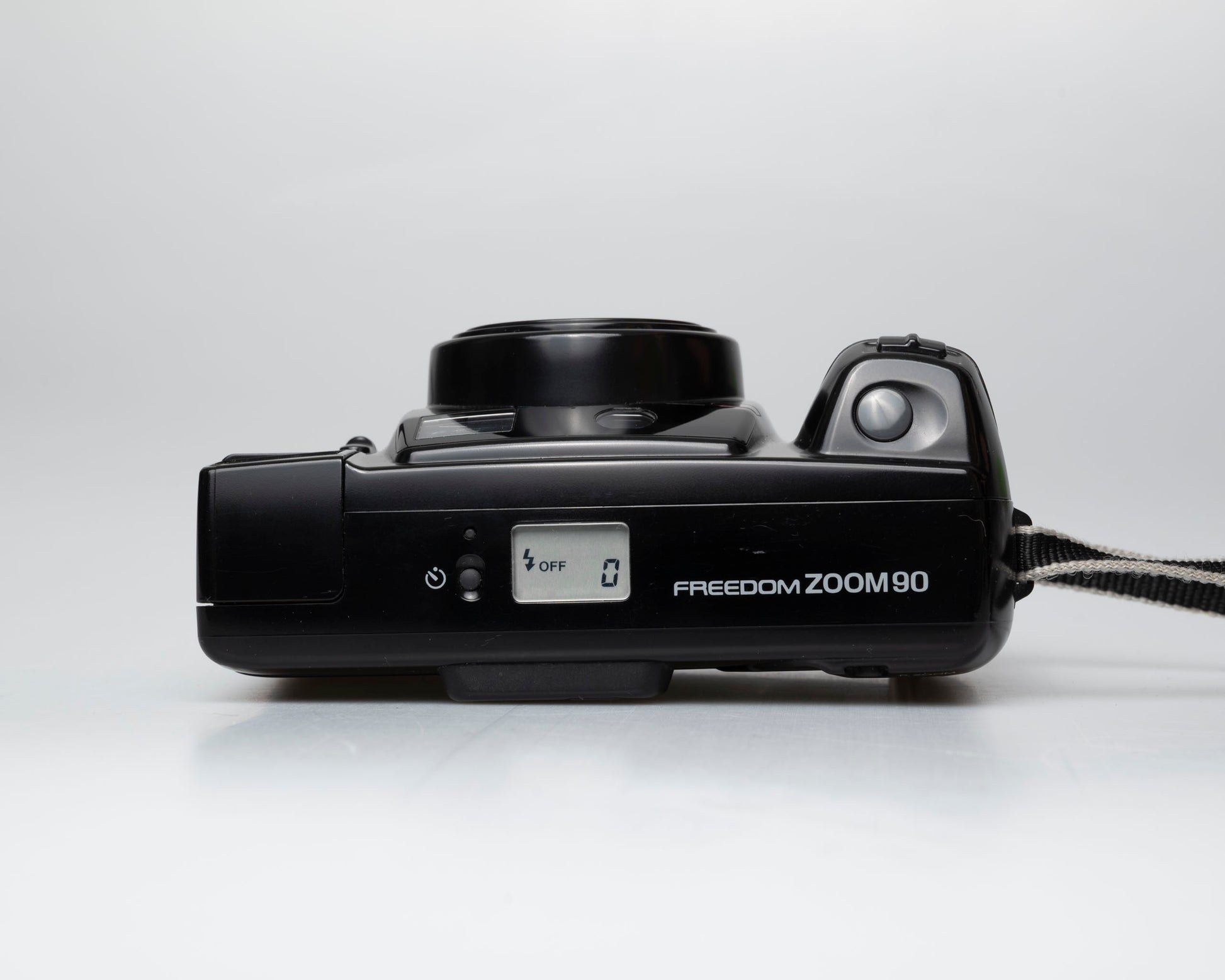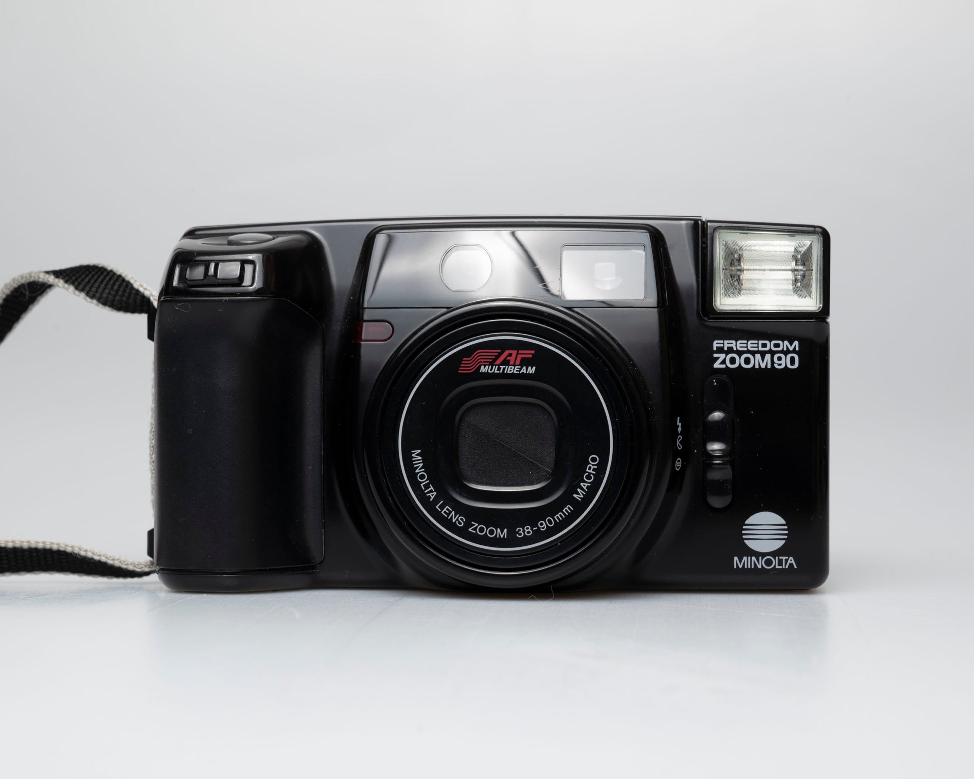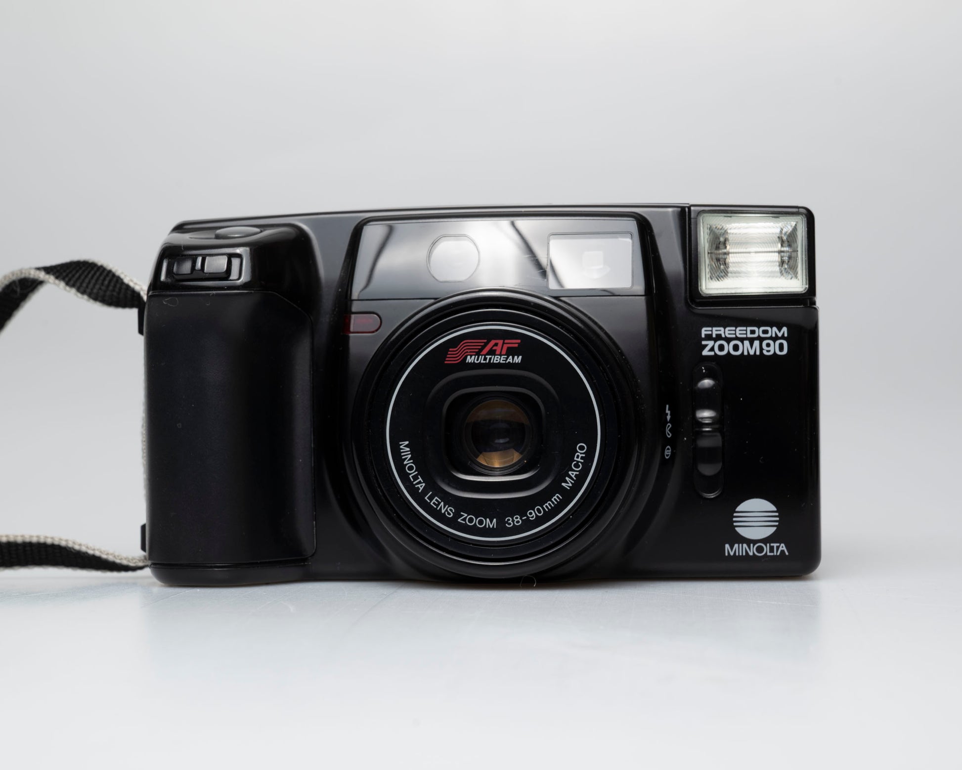 The Minolta Freedom Zoom 90 (also called the AF-Zoom 90) is an advanced 35mm film point-and-shoot from 1989. Here's how it was described in Minolta literature at the time: