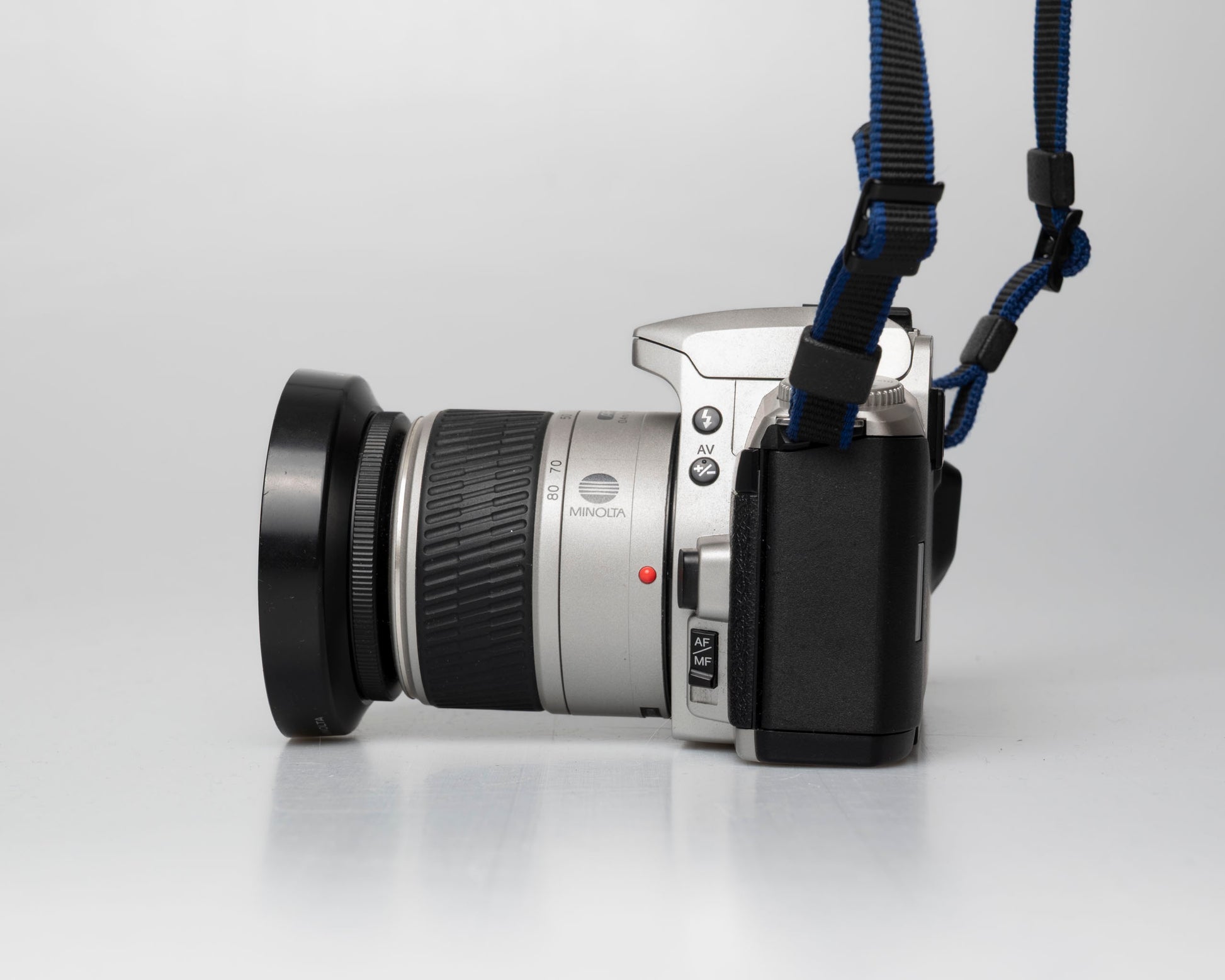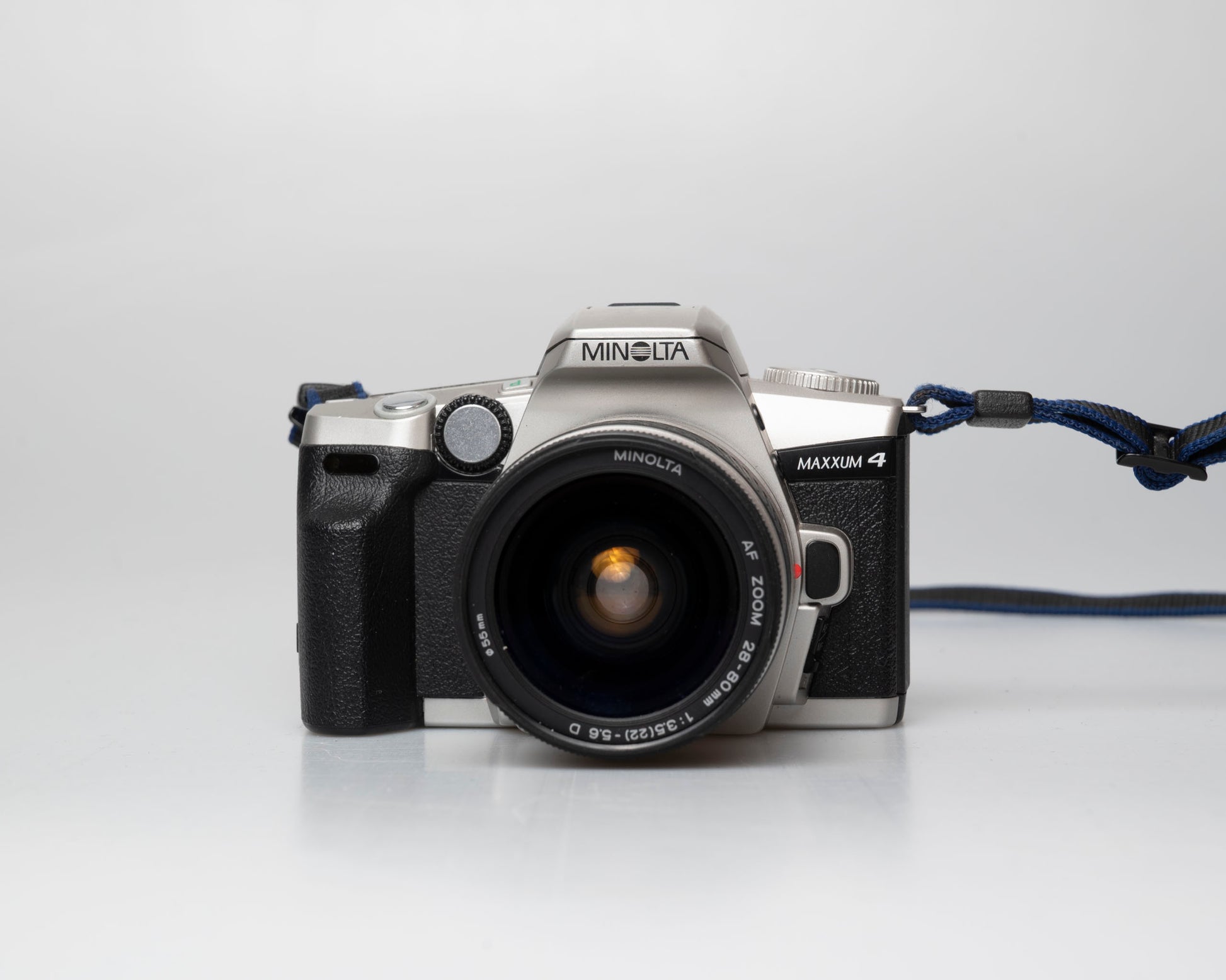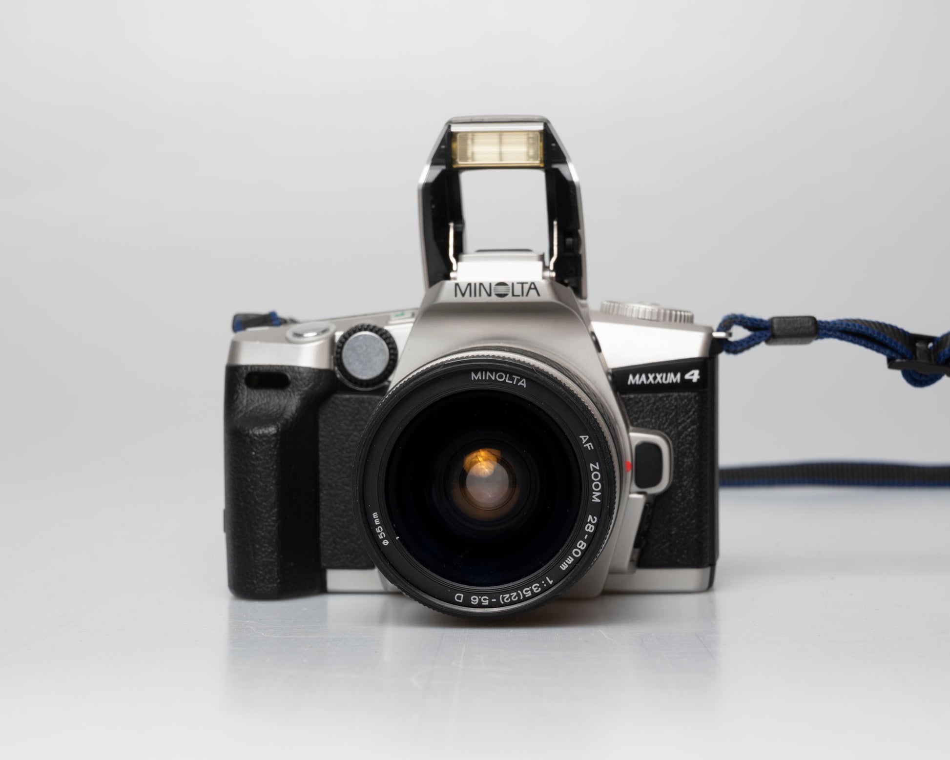 The Minolta Maxxum 4 is a very compact 35mm film SLR from 2002. It includes a Minolta AF 28-80 f3.5-5.6 zoom lens.